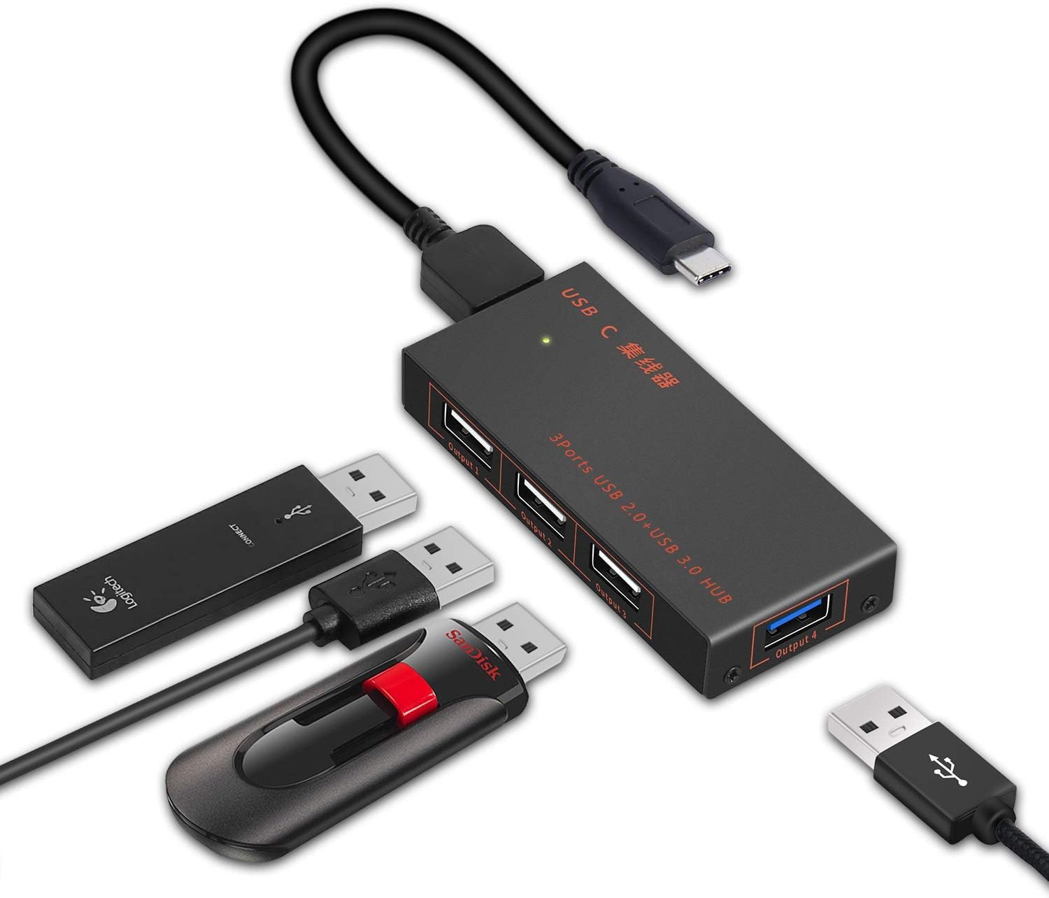 Hub USB C, adaptador de concentrador tipo C de 4 puertos, adaptador de concentrador de datos USB C de hierro con 3 puertos USB 2.0