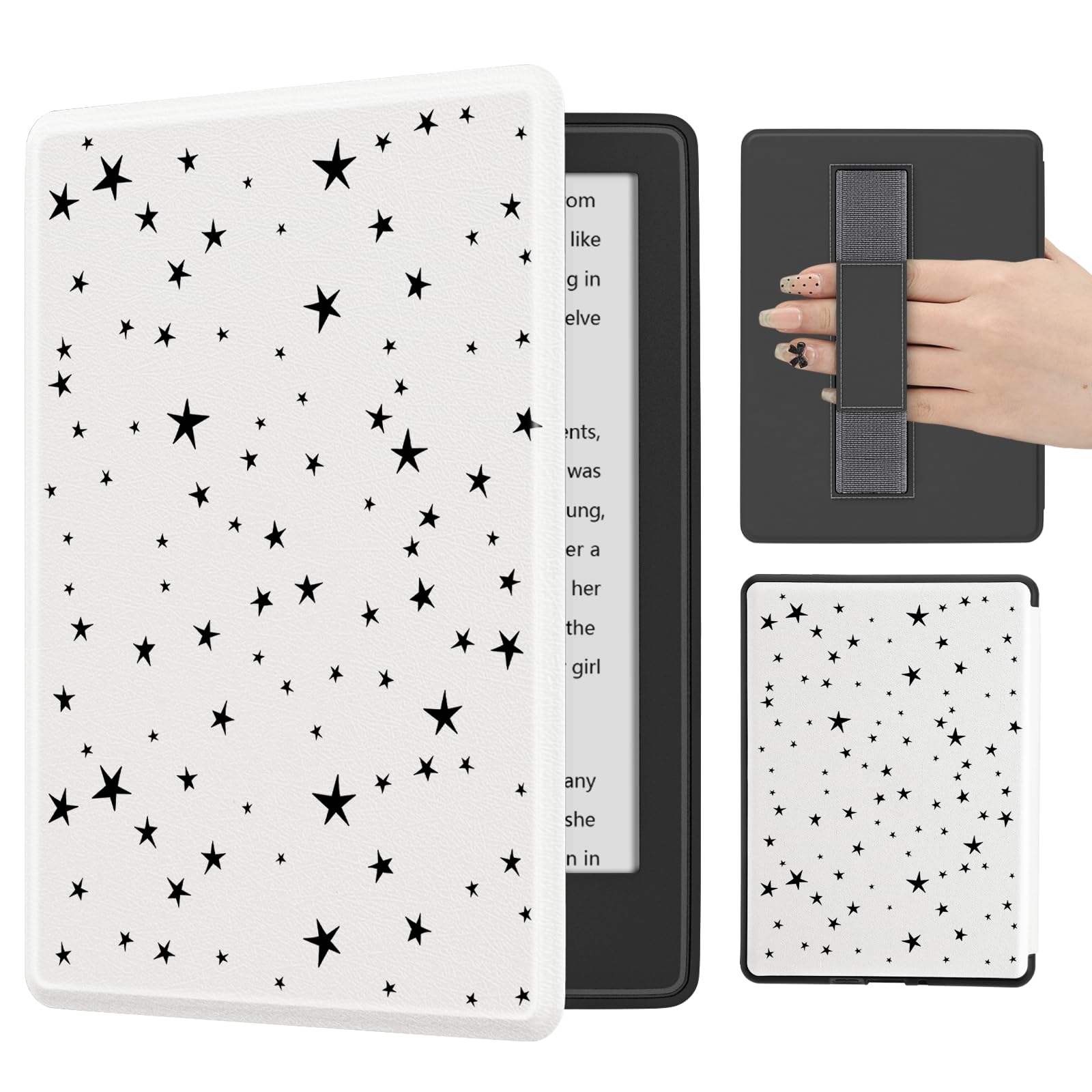 Funda de piel con diseño de estrella negra para Kindle Paperwhite 2024 (12ª/11ª generación-2024/2021), con función de encendido y