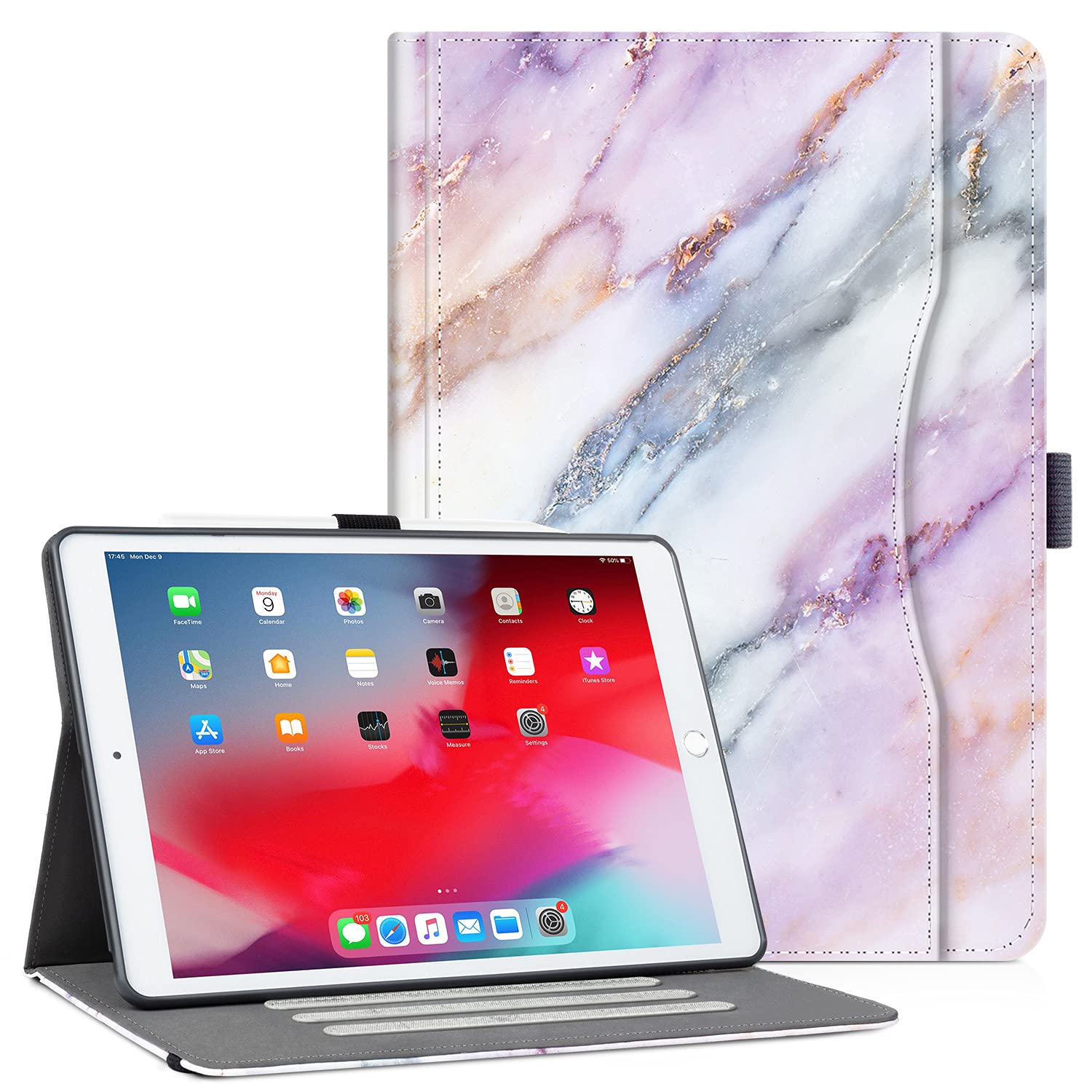 Vimorco Funda para iPad de 10.2 pulgadas de 7ª/8ª/9ª/9ª generación 2019/2020/2021 con bolsillo, soporte multiángulo, encendido y a