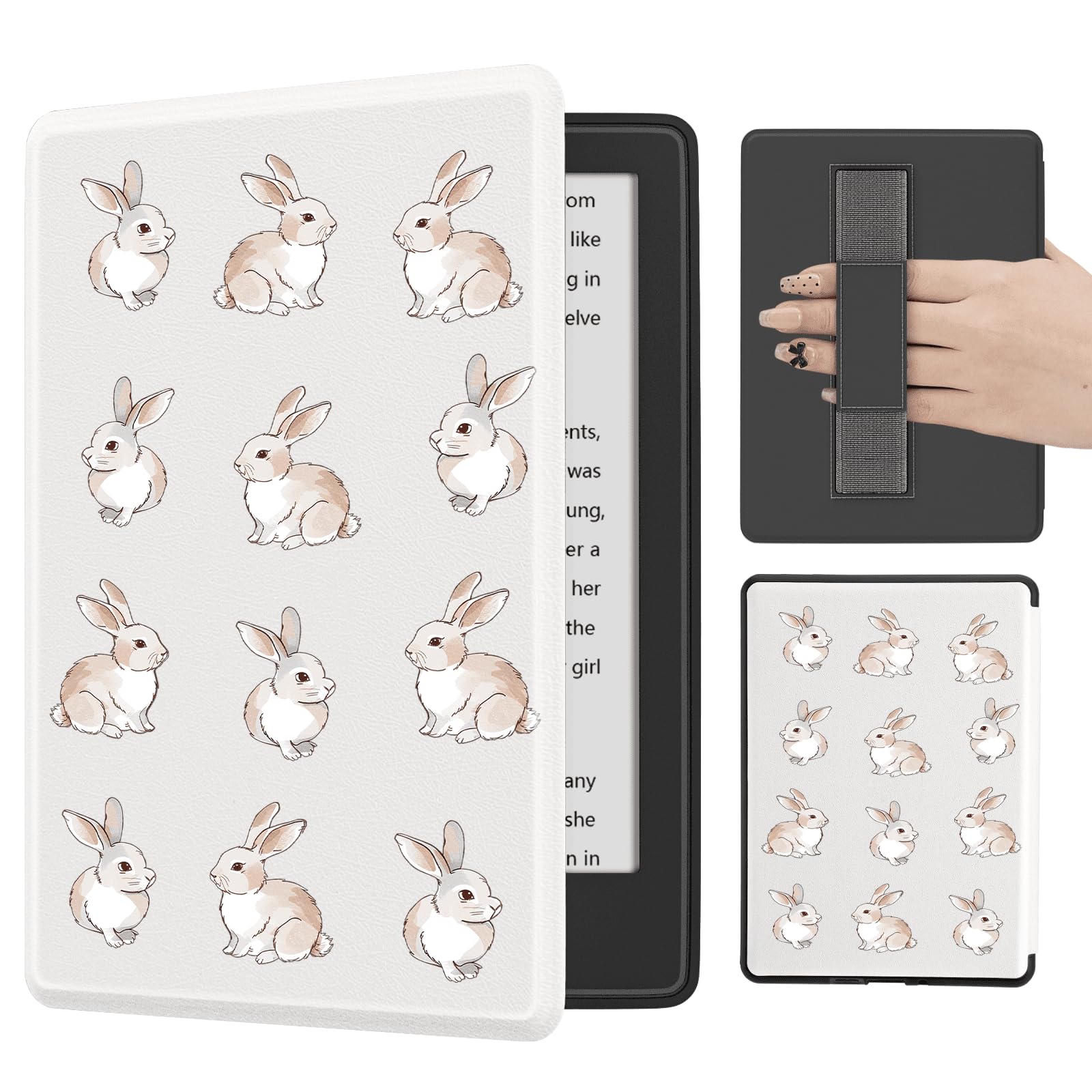 Funda de piel con diseño de conejo Kawaii para Kindle Paperwhite 2024 (12ª/11ª generación-2024/2021), con función de encendido y a