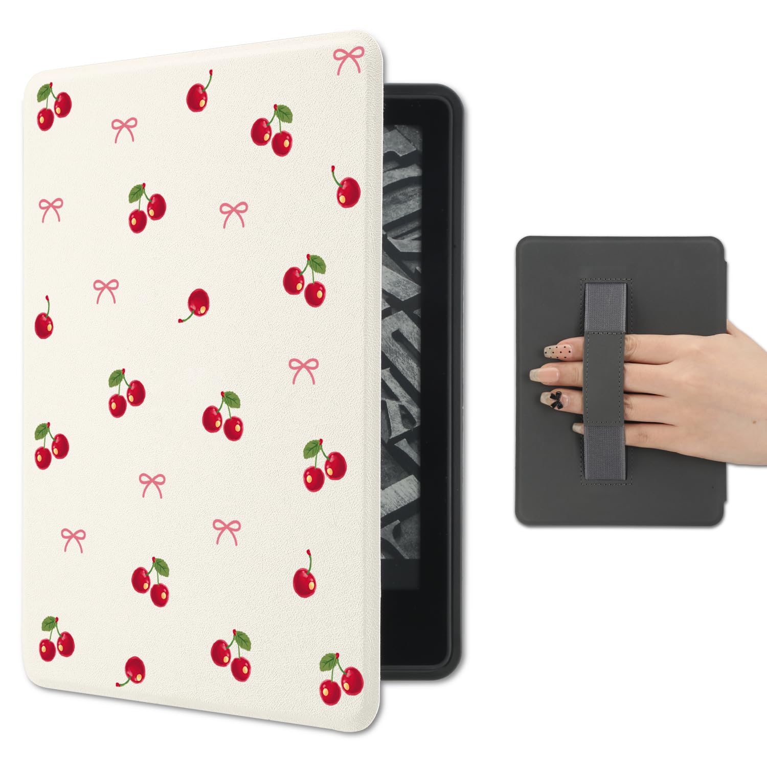 Funda Kawaii Cherry para Kindle de 11ª generación (versión 2024/2022) de 6 pulgadas con correa de mano, piel sintética de alta cal