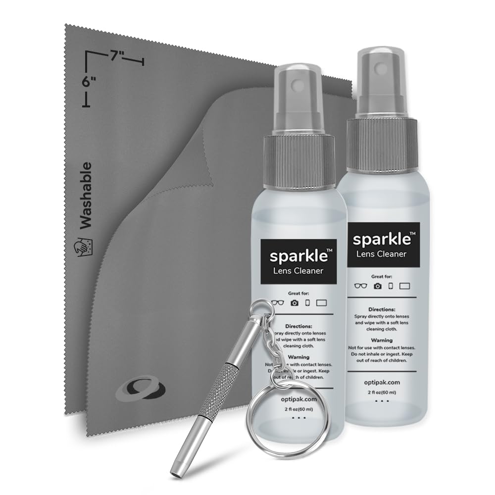 Sparkle Kit de limpieza y reparación de lentes seguro antirreflejante – (2) spray limpiador de lentes de 2 onzas, (2) paño de micr