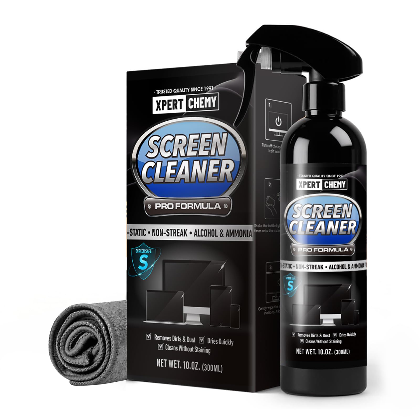 Screen Cleaner Spray and Wipe, 10oz TV Screen Cleaner Spray and Microfiber Cloth kit for Phones, iPads, Computer, MacBooks, Laptop
