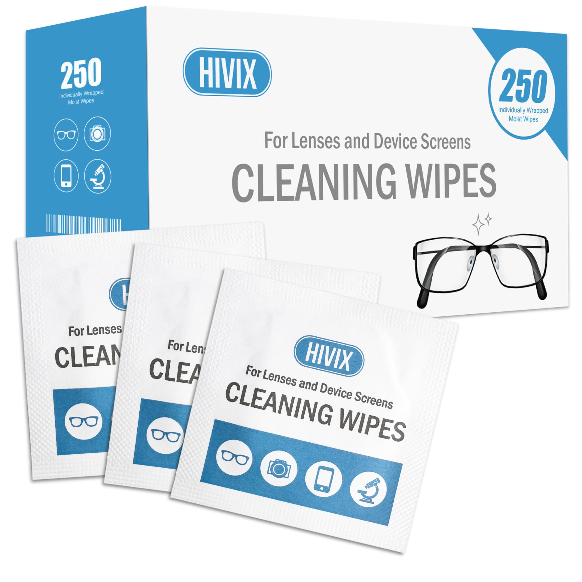 250 unidades, toallitas para lentes envueltas individualmente, toallitas limpiadoras de gafas y toallitas limpiadoras de pantalla,