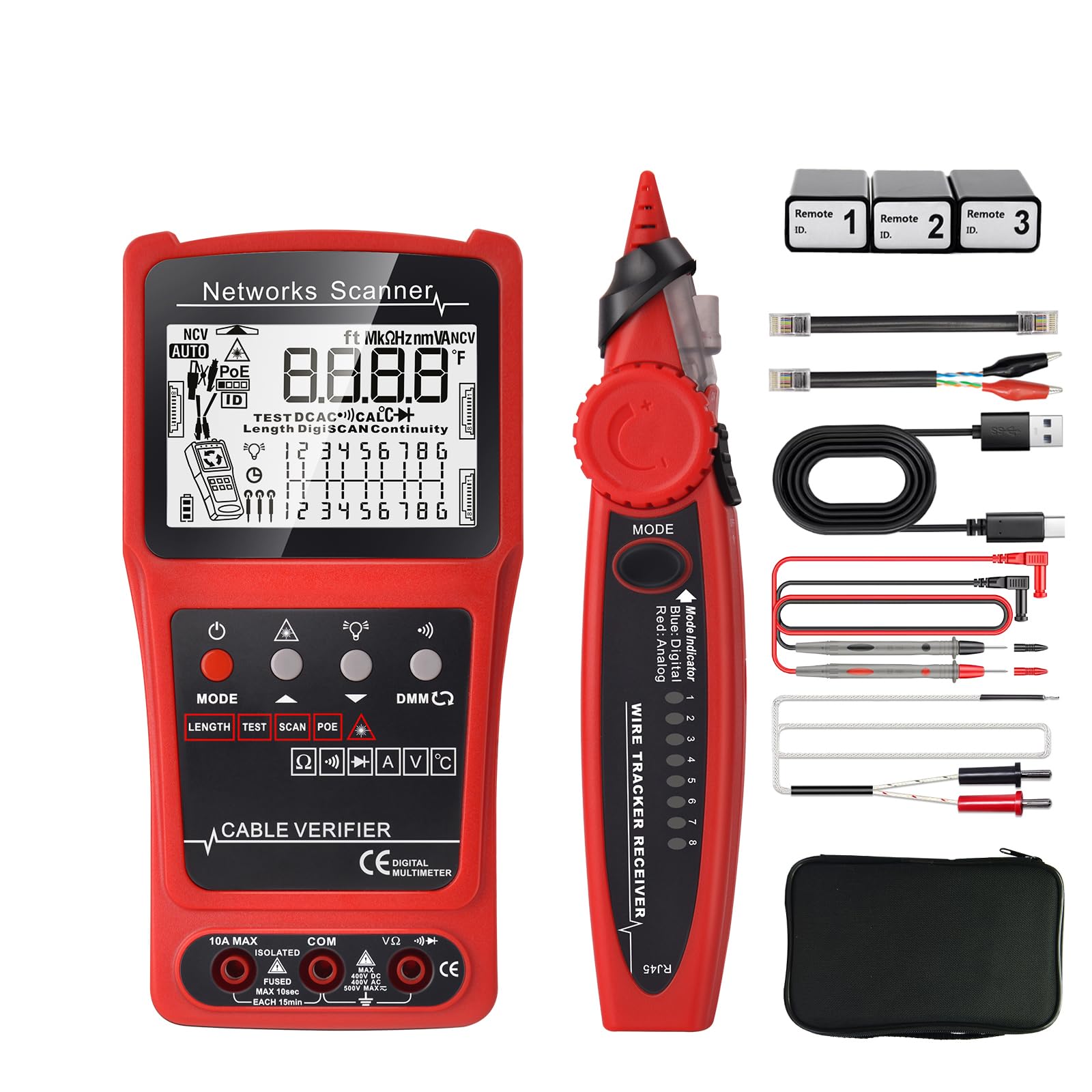 Probador de cables de red RockyMars NF8209, rastreador de cables con prueba PoE, flash de puerto, escaneo de cable, medición de lo