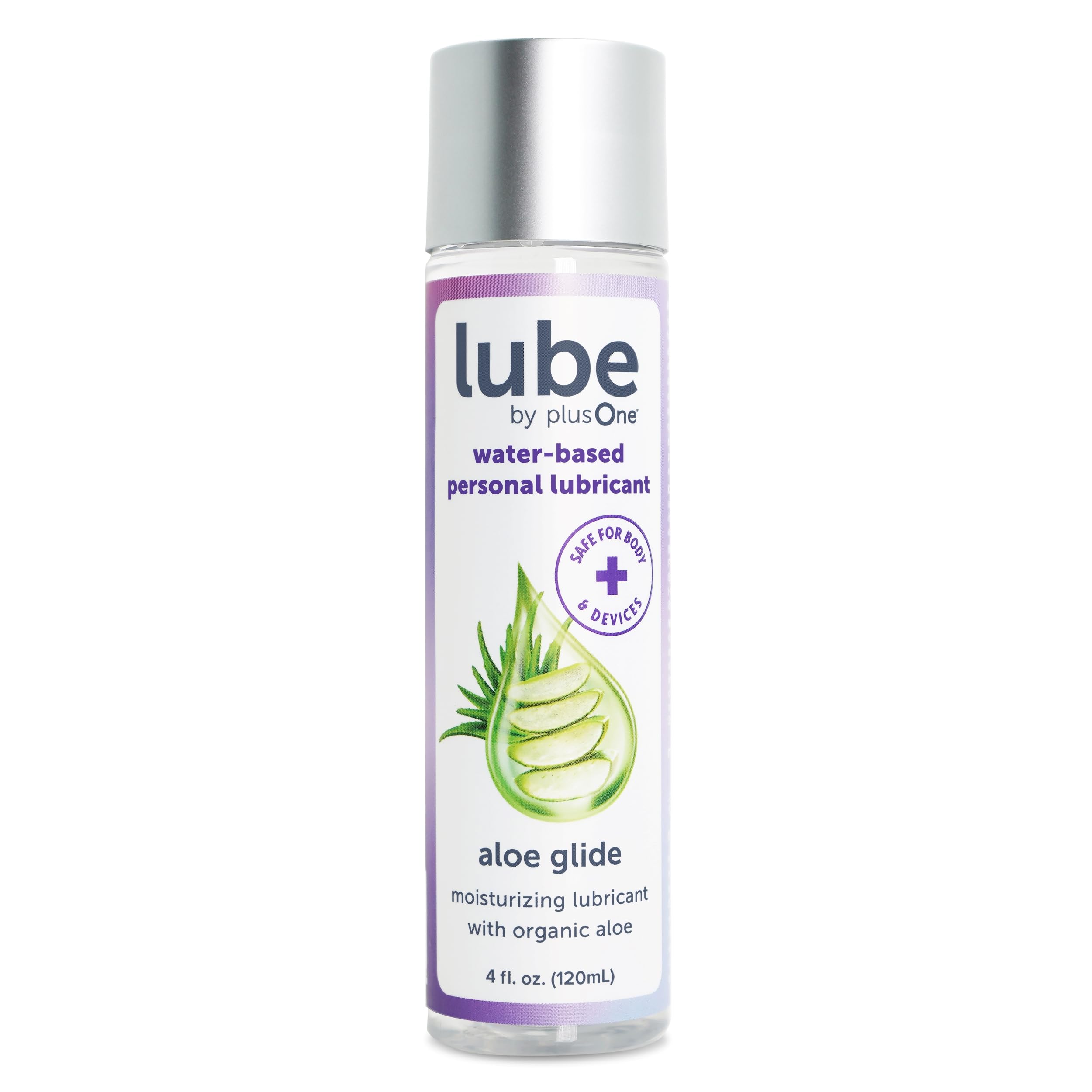 plusOne Aloe Glide Lubricante personal, lubricante a base de agua con aloe orgánico, pH equilibrado, antiadherente, seguro para co