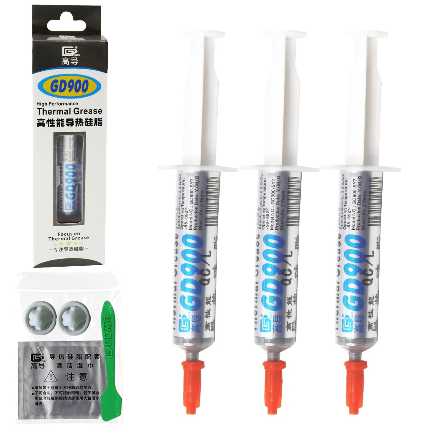GD900 3 piezas de peso neto jeringa de 0.25 oz con ampolla y caja Embalaje Gris Pasta de grasa conductora térmica yeso compuesto d