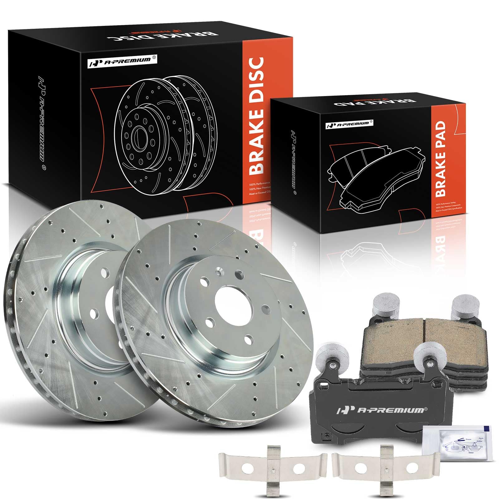 A-Premium Juego de 6 unidades de rotores de freno de disco perforados y ranurados delanteros de 13.58 pulgadas (13.583 in) + pasti