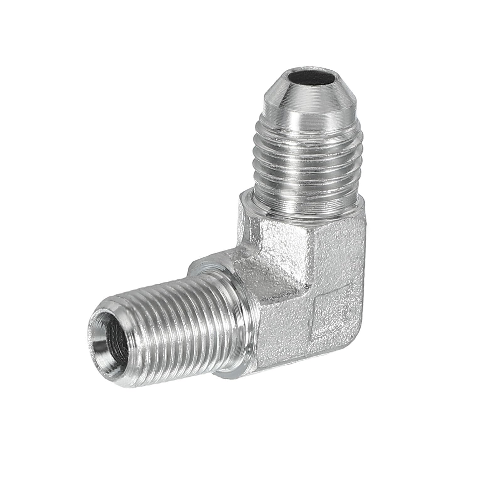 PATIKIL Adaptador de tubo de 90 grados, 2 piezas macho de 7/16 pulgadas de 37° de llamarada JIC x 1/8 pulgadas BSPT conector macho