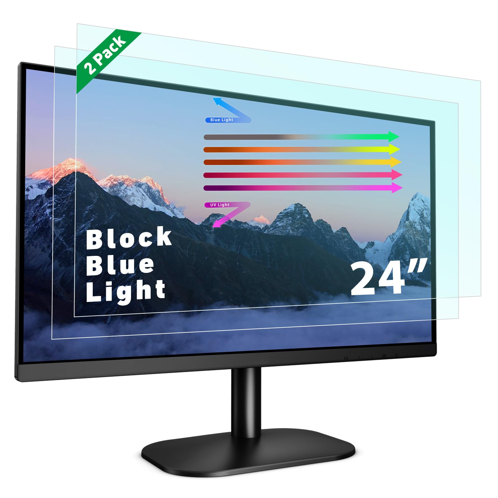 PYS Paquete de 2 protectores de pantalla de luz azul de 24 pulgadas para monitor, filtro de luz azul extraíble 16:9, alivio de la