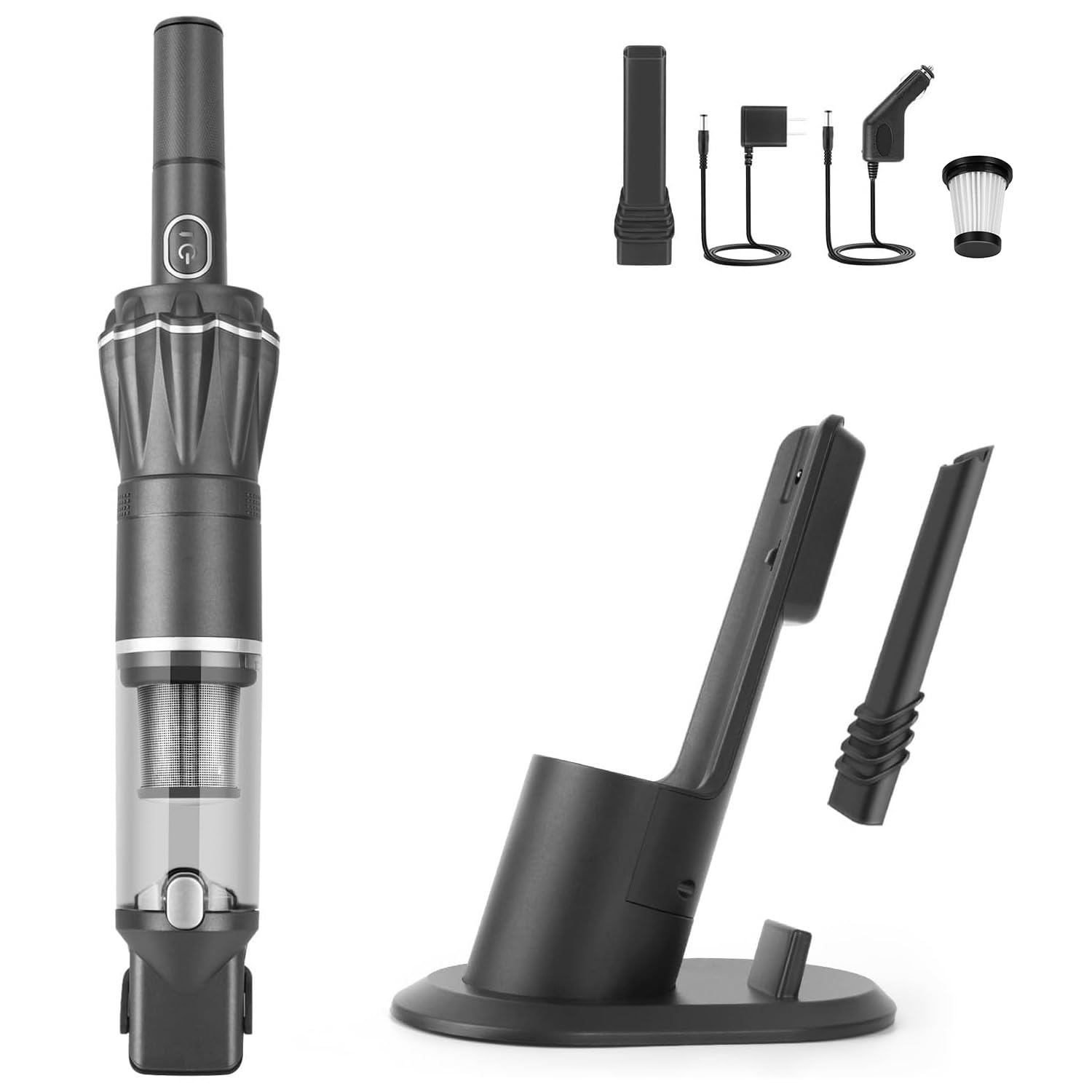Aspiradora de mano inalámbrica, súper ligera de 1 libra con potente succión, base de carga, cargador de automóvil, taza de polvo d