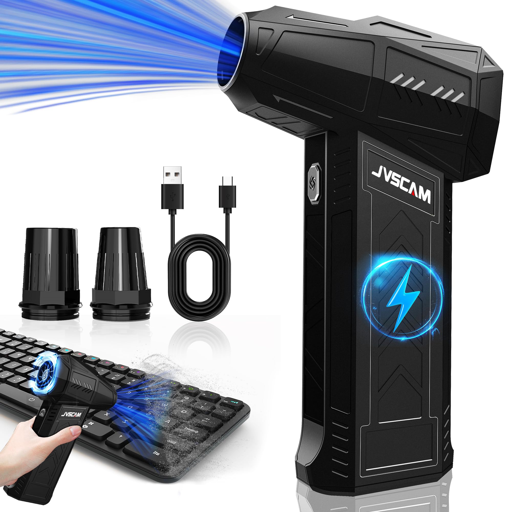 Plumero eléctrico de aire – 130,000 RPM, motor sin escobillas, 3 engranajes ajustables – para teclado, PC, coche, cama de aire y l