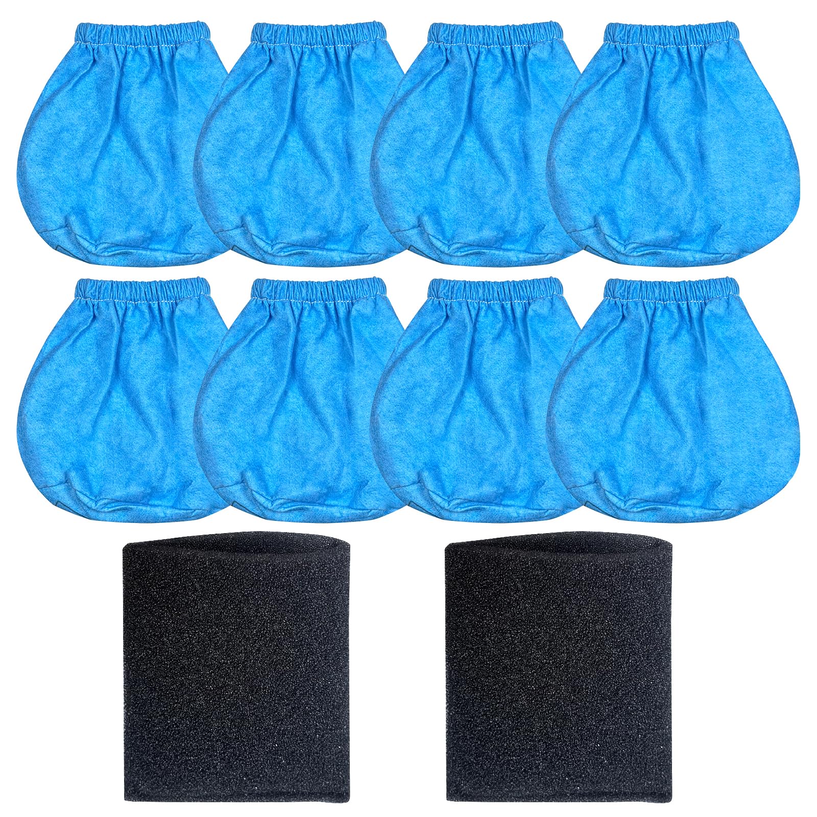 Paquete de 8 filtros de tela VRC2 y 2 filtros de espuma VFF21 compatibles con Vacmaster de 1.5 a 3.2 galones de aspiración húmeda/