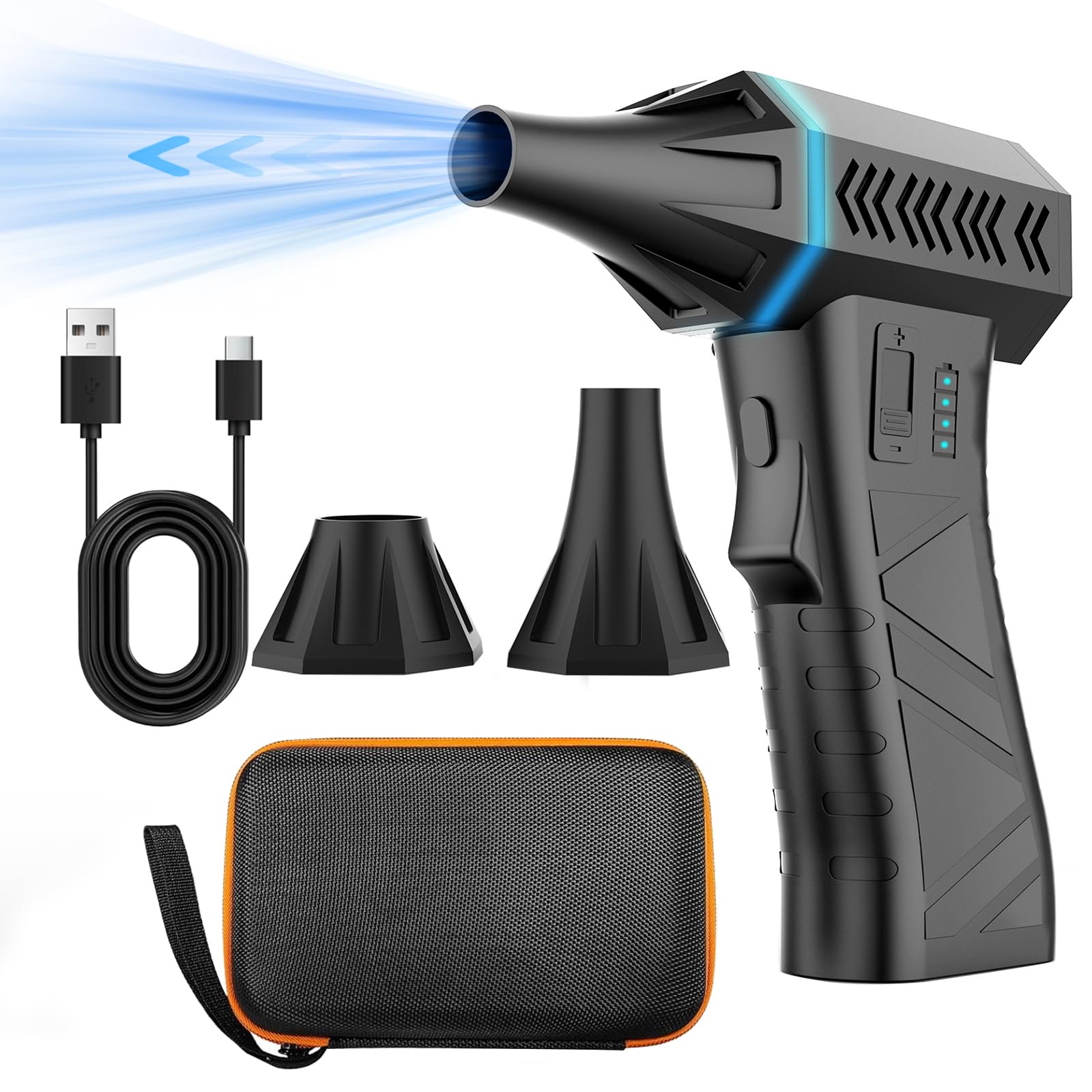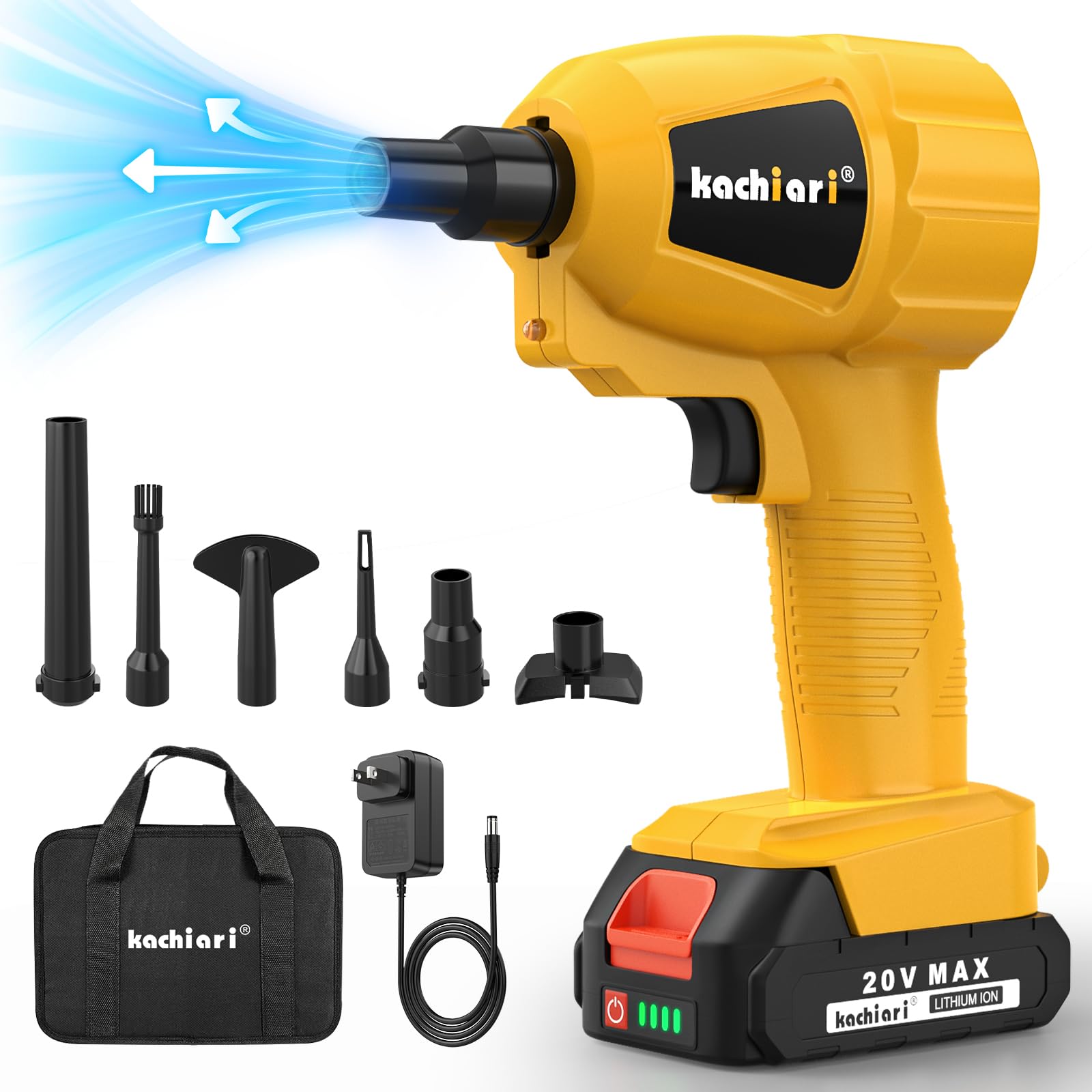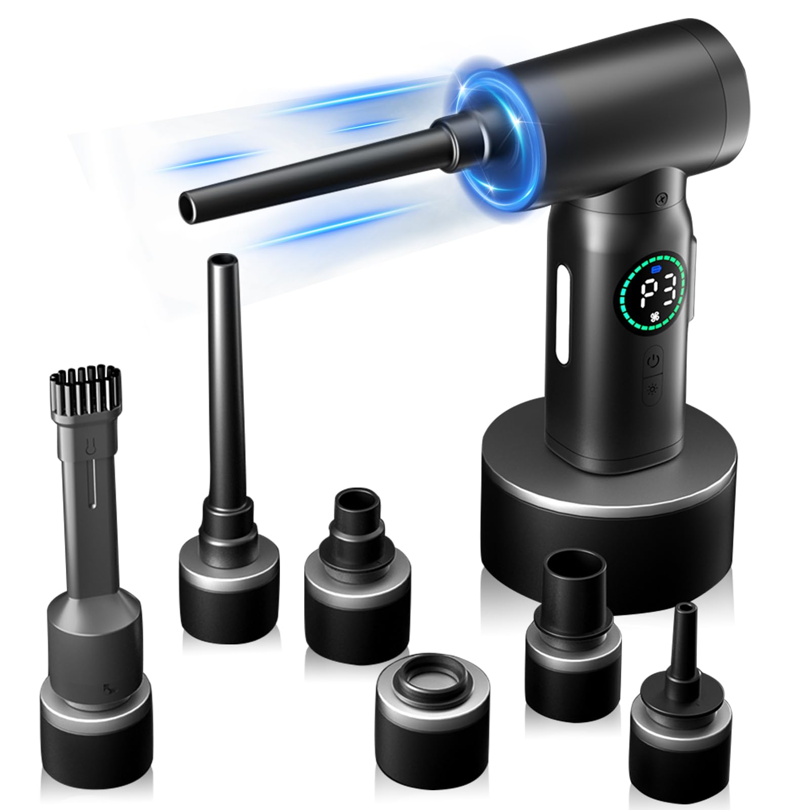 Plumero de aire comprimido de alto volumen con batería máxima de 20 V, motor de cepillo de 50000 RPM, luz LED, 6 accesorios multiu