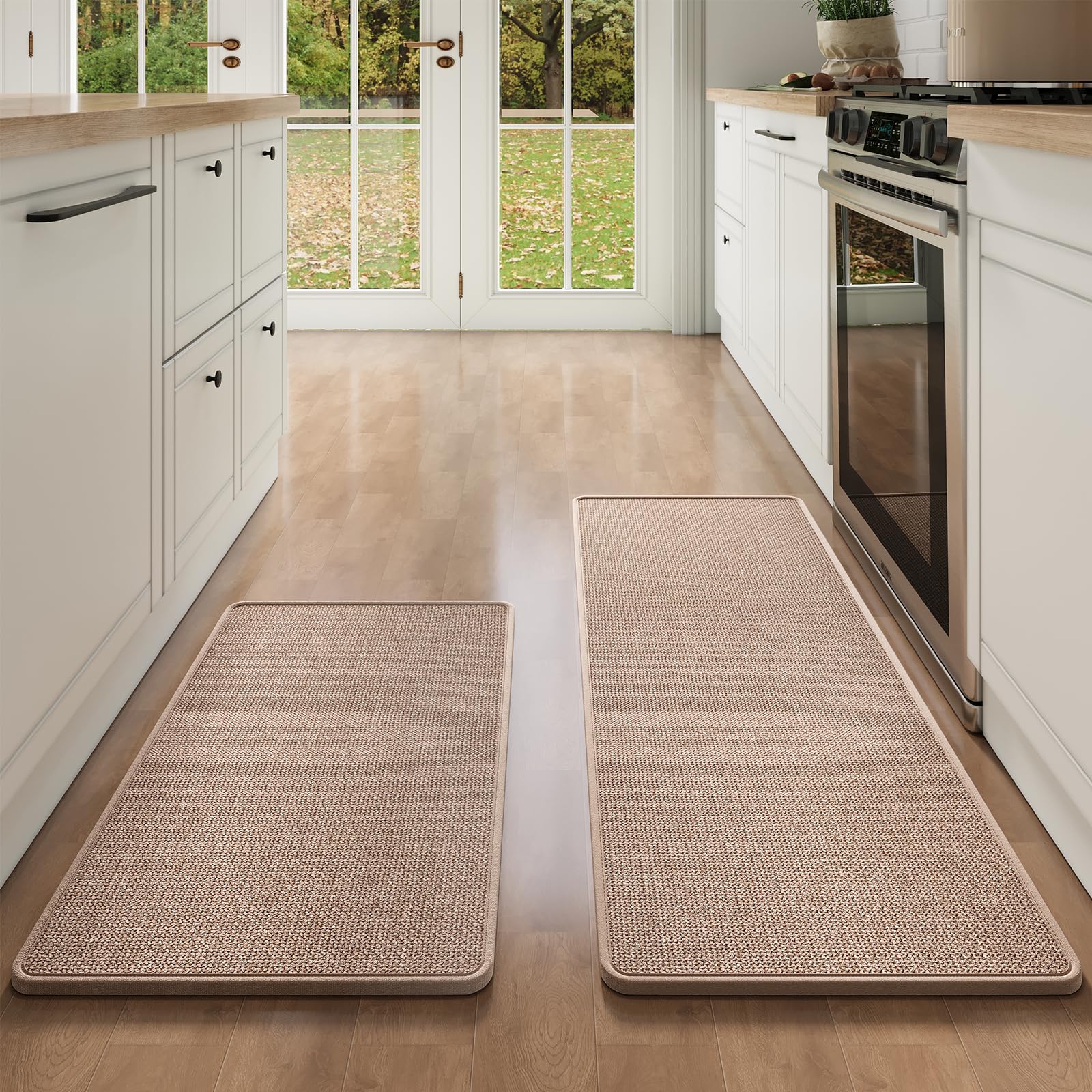 Juego de 2 tapetes de cocina antifatiga para piso, tapetes de cocina tejidos con aspecto de lino absorbentes, antideslizantes, lav