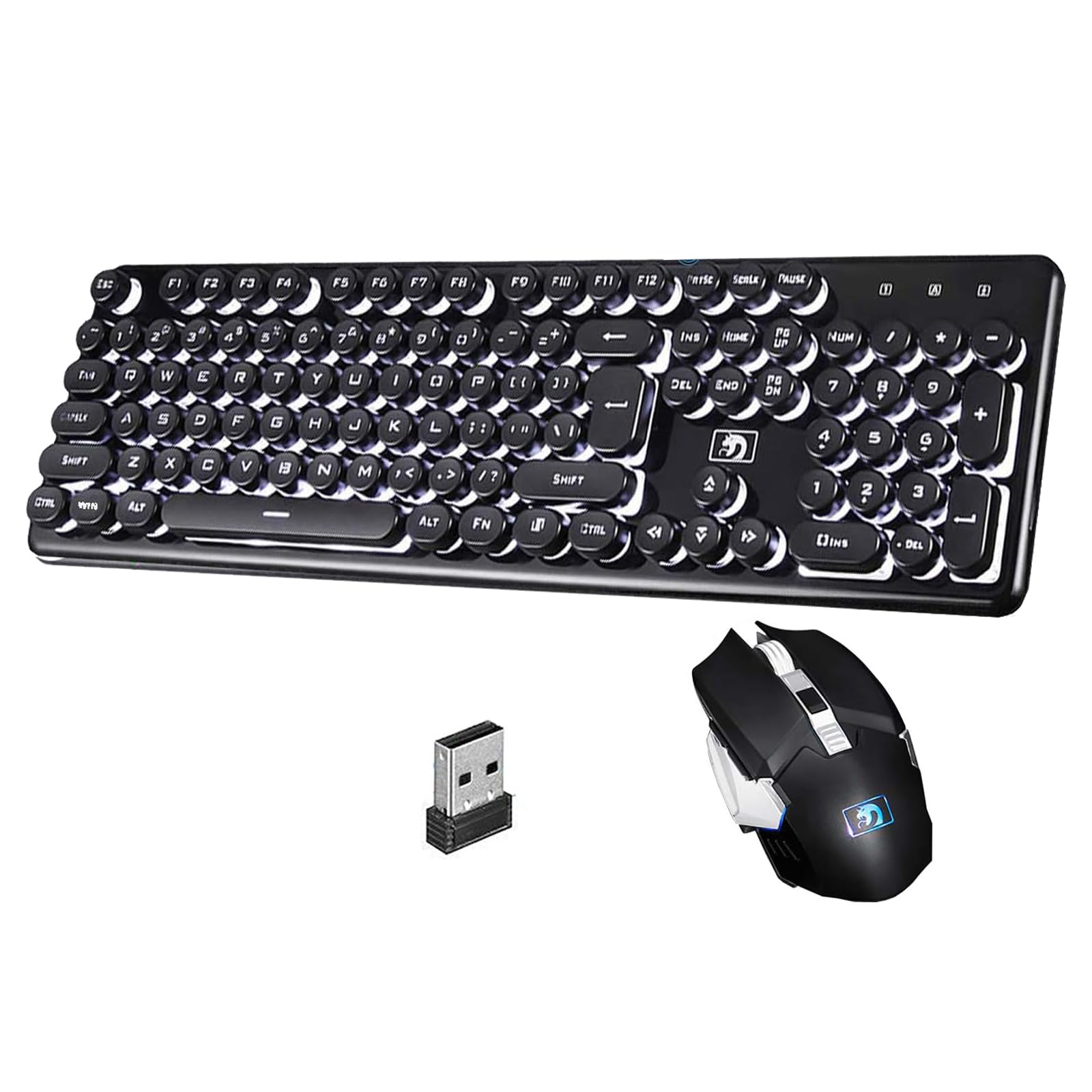 Combo de teclado y mouse para juegos, teclado Wilress de 2.4 GHz con retroiluminación LED blanca de 104 teclas, ratones ergonómico