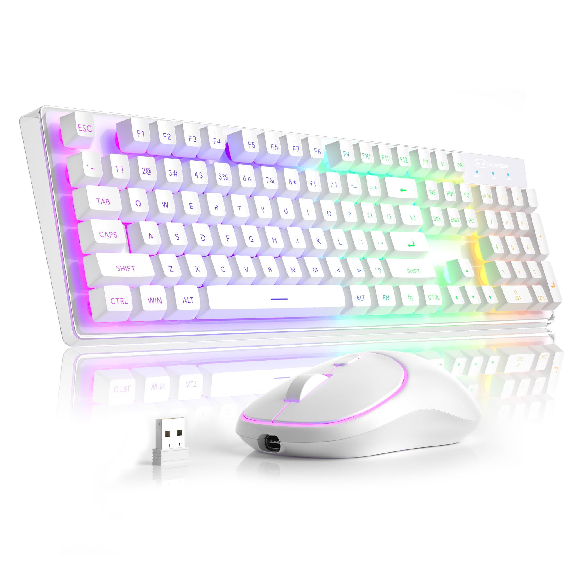 MageGee V550 – Teclado y mouse inalámbricos para juegos, 2.4G de tamaño completo RGB LED teclados para computadora con carcasa tra