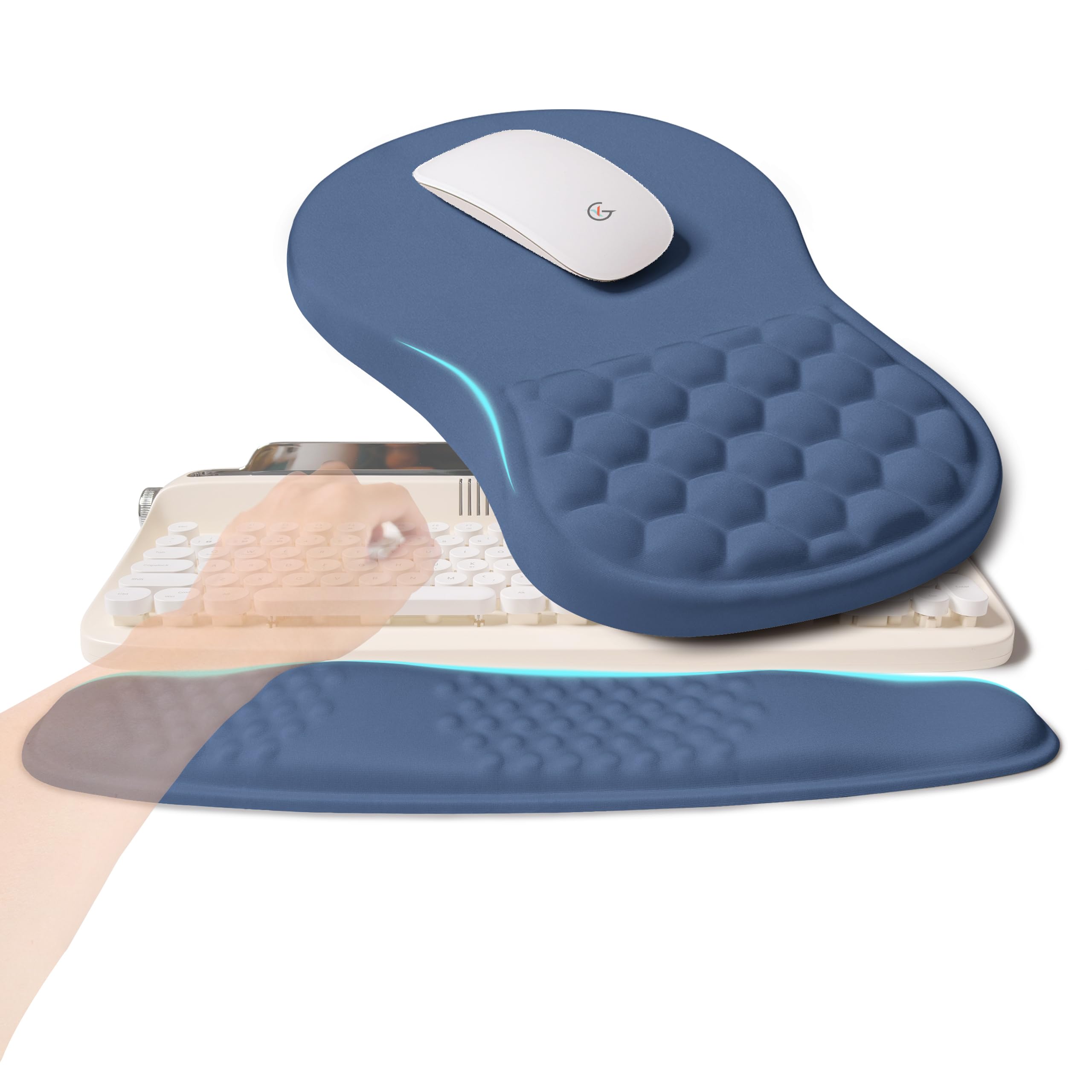 Juego ergonómico 2 en 1, reposamuñecas para teclado de elevación ondulada y almohadilla para mouse con pendiente de masaje, cojín