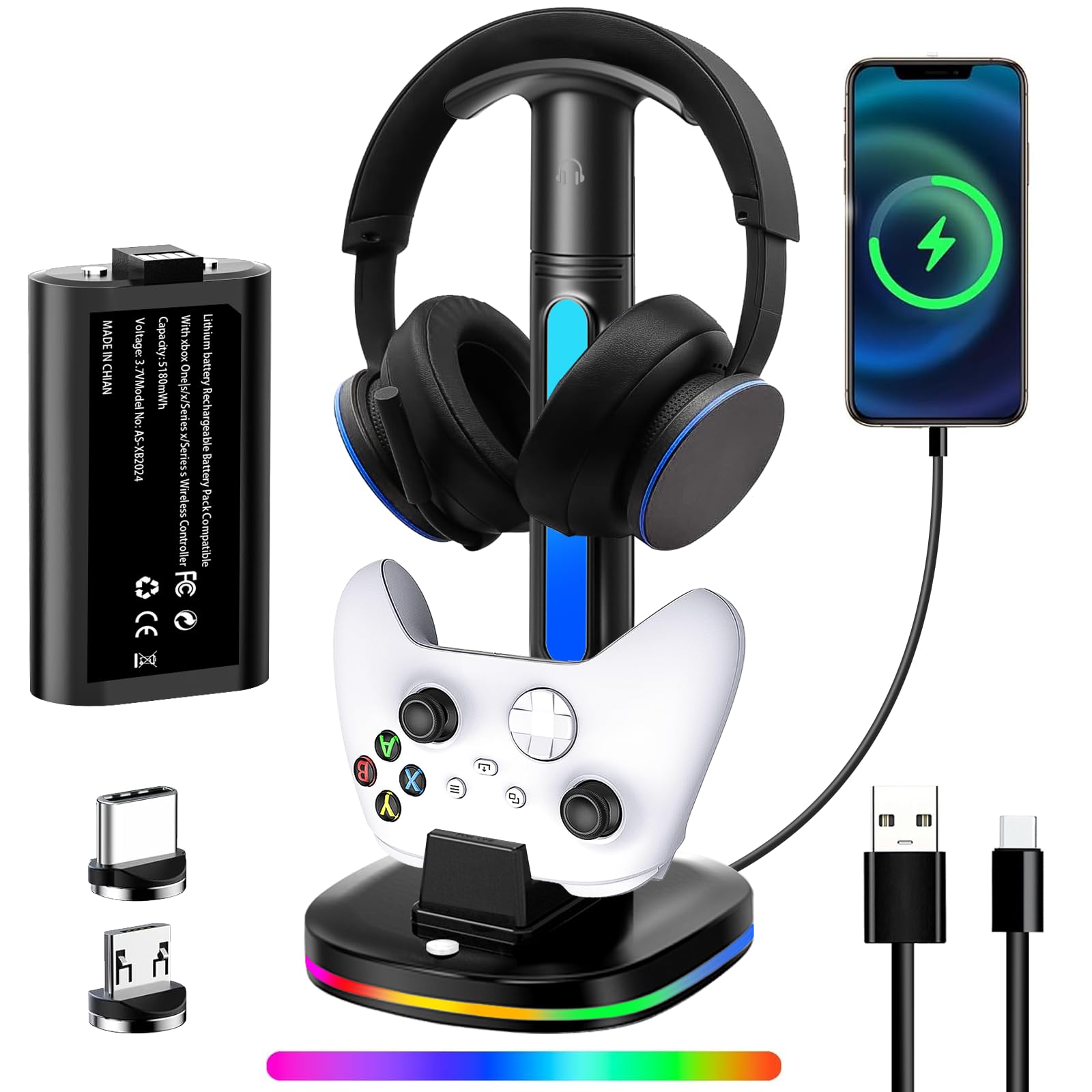 Soporte para auriculares Xbox con cargador de controlador, estación de carga RGB para Xbox Series X/S/One/One X/One S, equipado co