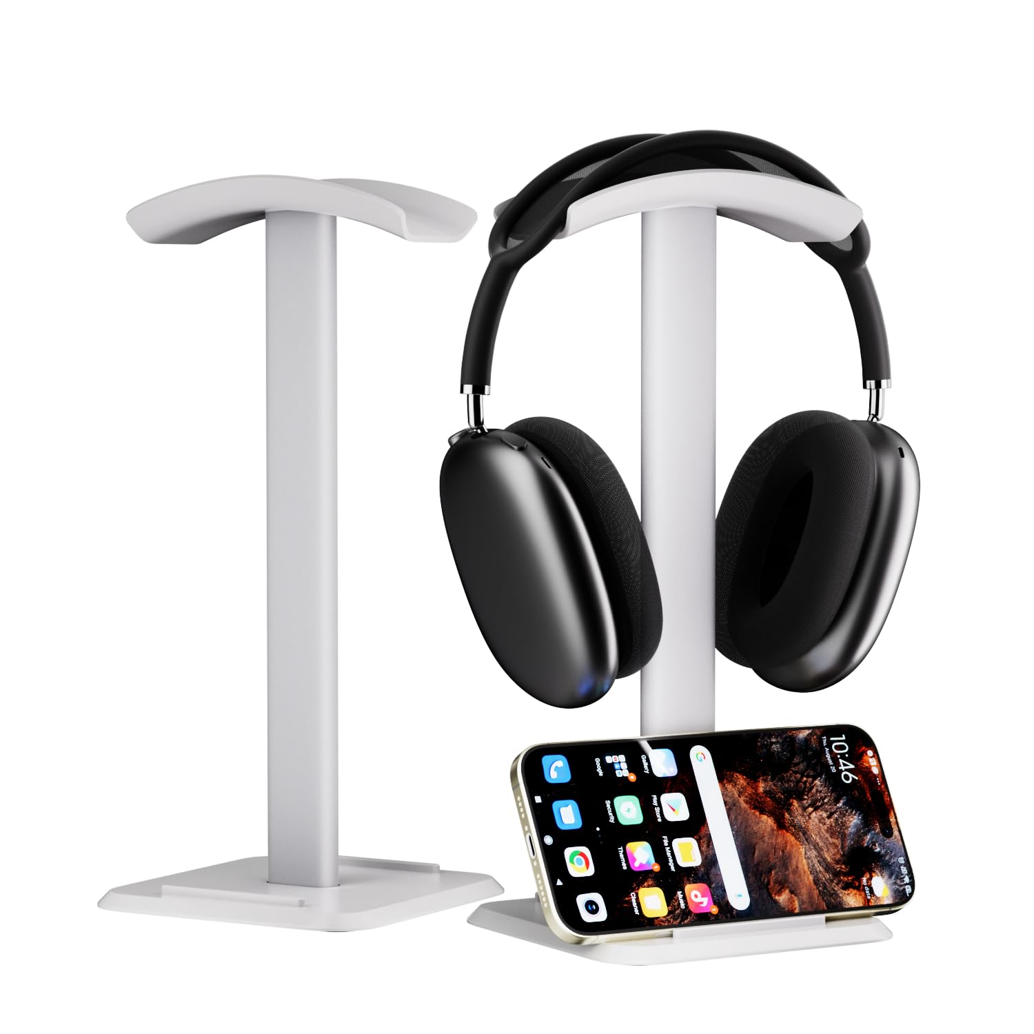 1 soporte para auriculares 2 en 1 y soporte para teléfono, colgador de aluminio, reposacabezas de plástico, compatible con AirPods