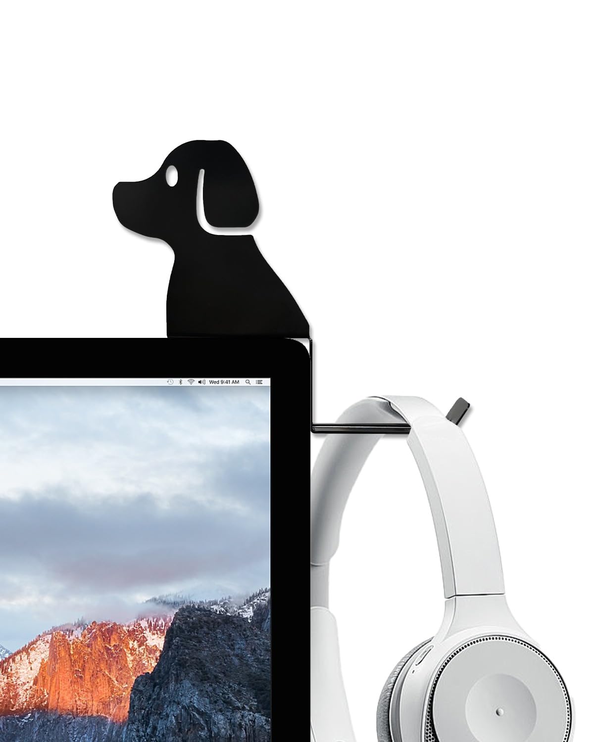 Soporte para monitor, gancho de cola de cachorro para auriculares, ahorra espacio en el escritorio y protege los auriculares, orga