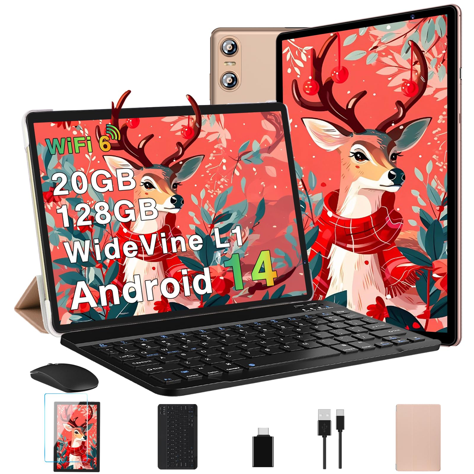 Tablet Android 14 2025, tabletas de 10 pulgadas 20 GB de RAM+128 GB de ROM (1 TGB TF), tableta Octa-Core con teclado, mouse, panta