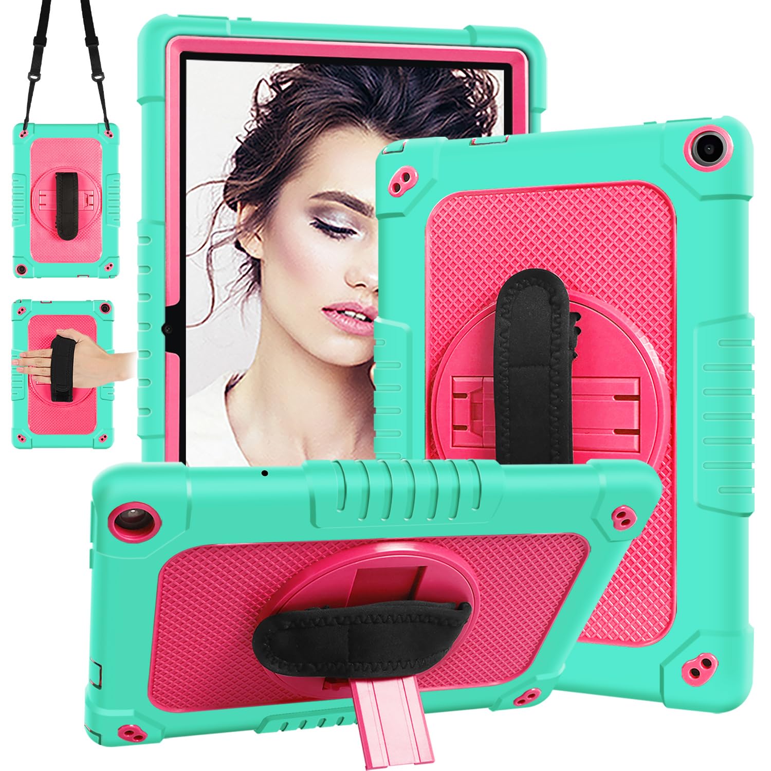 Case for TCL Tab 10 5G Model:9183W 10.1 Inch,Shockproof Kids Friendly Protective Cover Built-in Kickstand with Shoulder Strap for