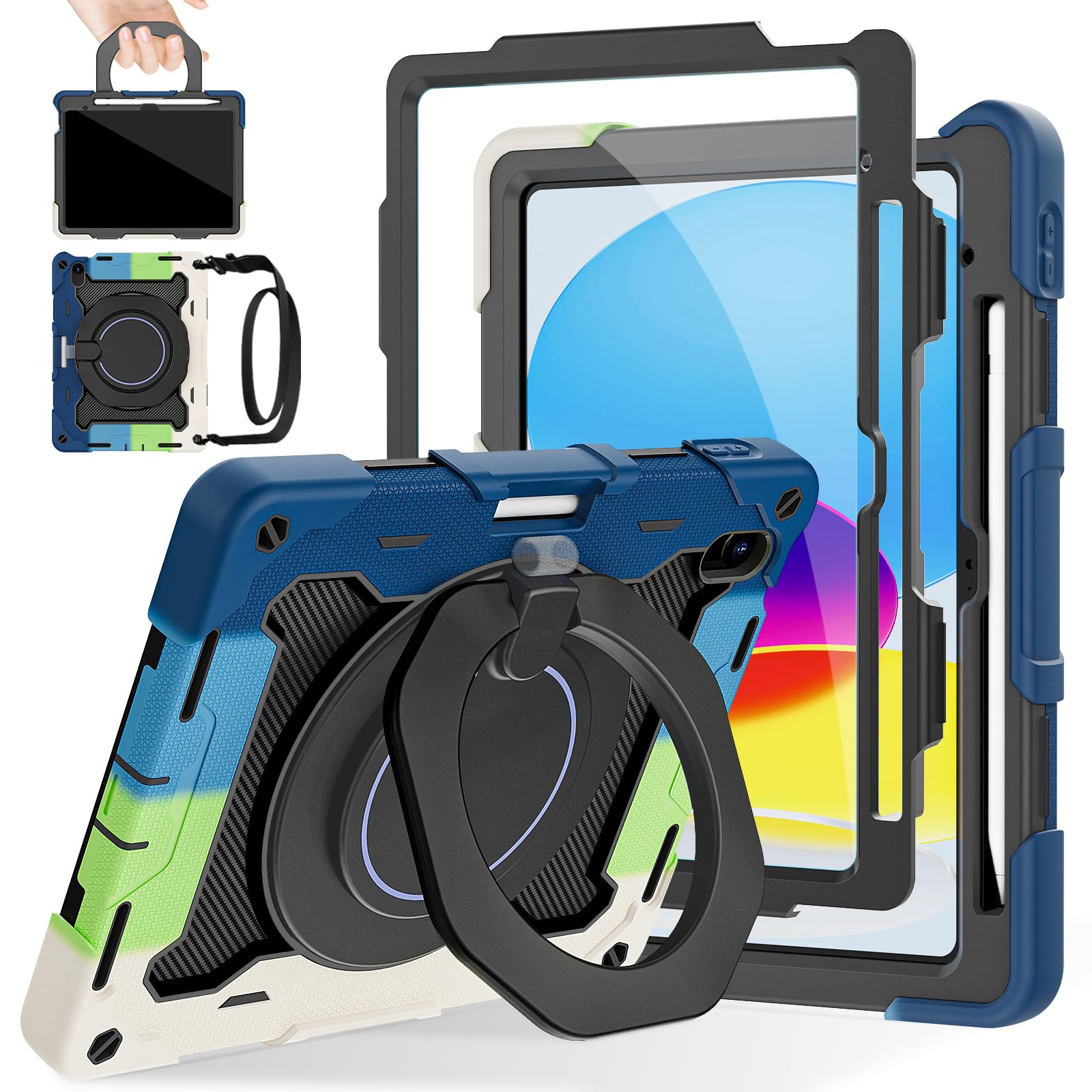for Onn 10.1 Tablet Case Gen 3 Cover,Case for Walmart ONN 10.1 Inch 2022 Tablet,Heavy Duty Shockproof Kids Rotating Stand Hand Cov