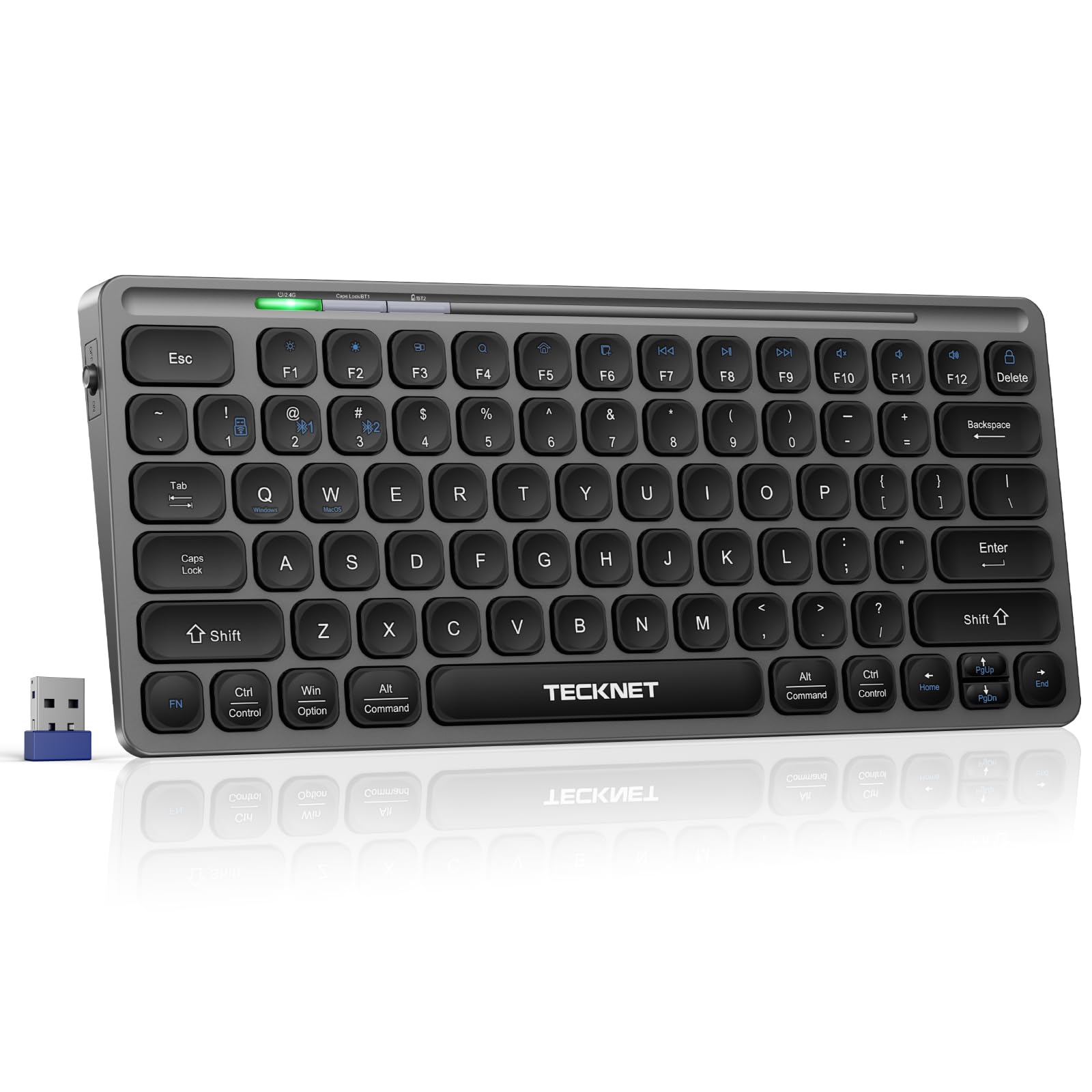 TECKNET Teclado Bluetooth inalámbrico, teclado recargable delgado (2.4 G+BT 5.0), interruptor fácil de múltiples dispositivos, esc
