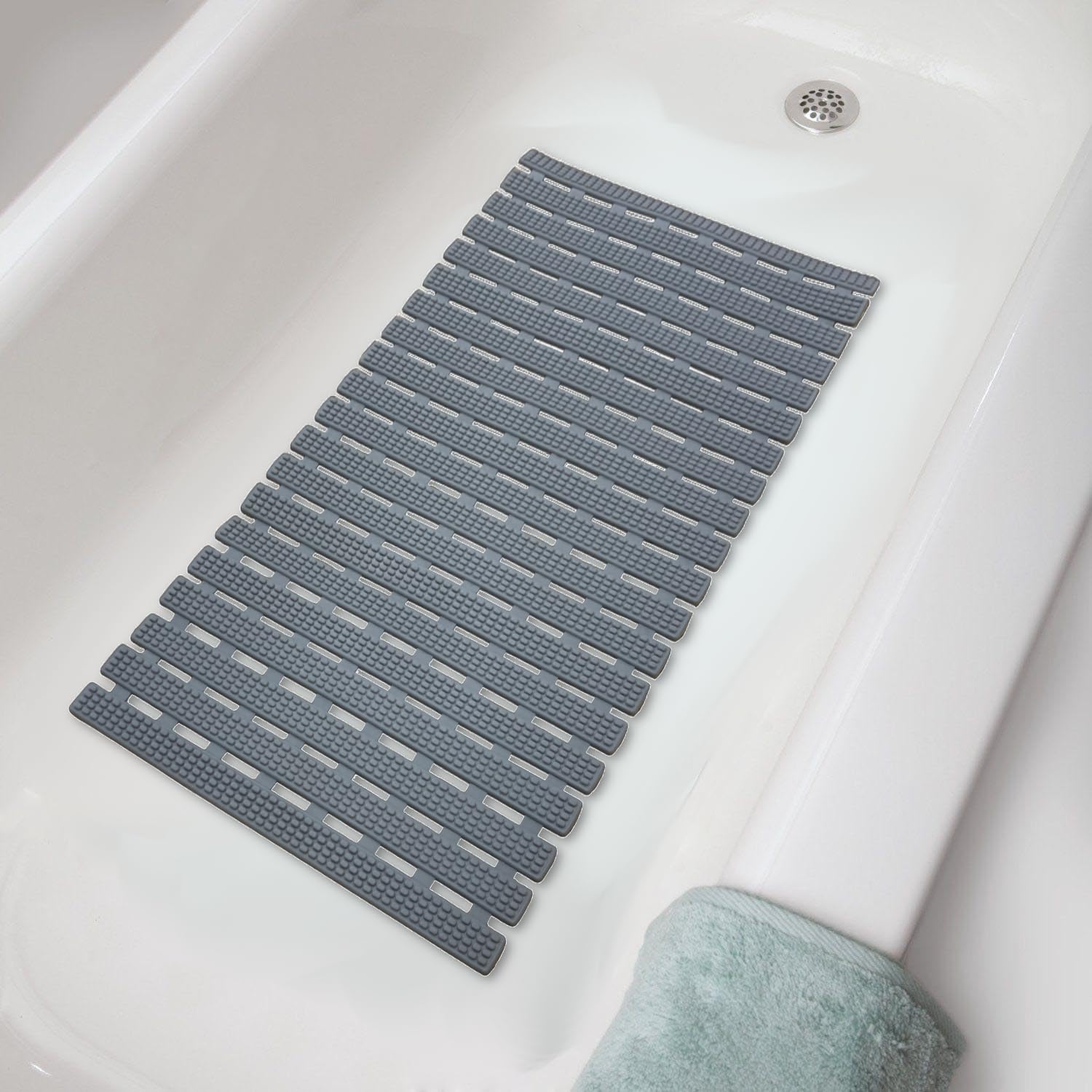 Tapete de silicona para bañera, extra grande, antideslizante, plegable, con ventosas fuertes y grandes agujeros de drenaje, durade