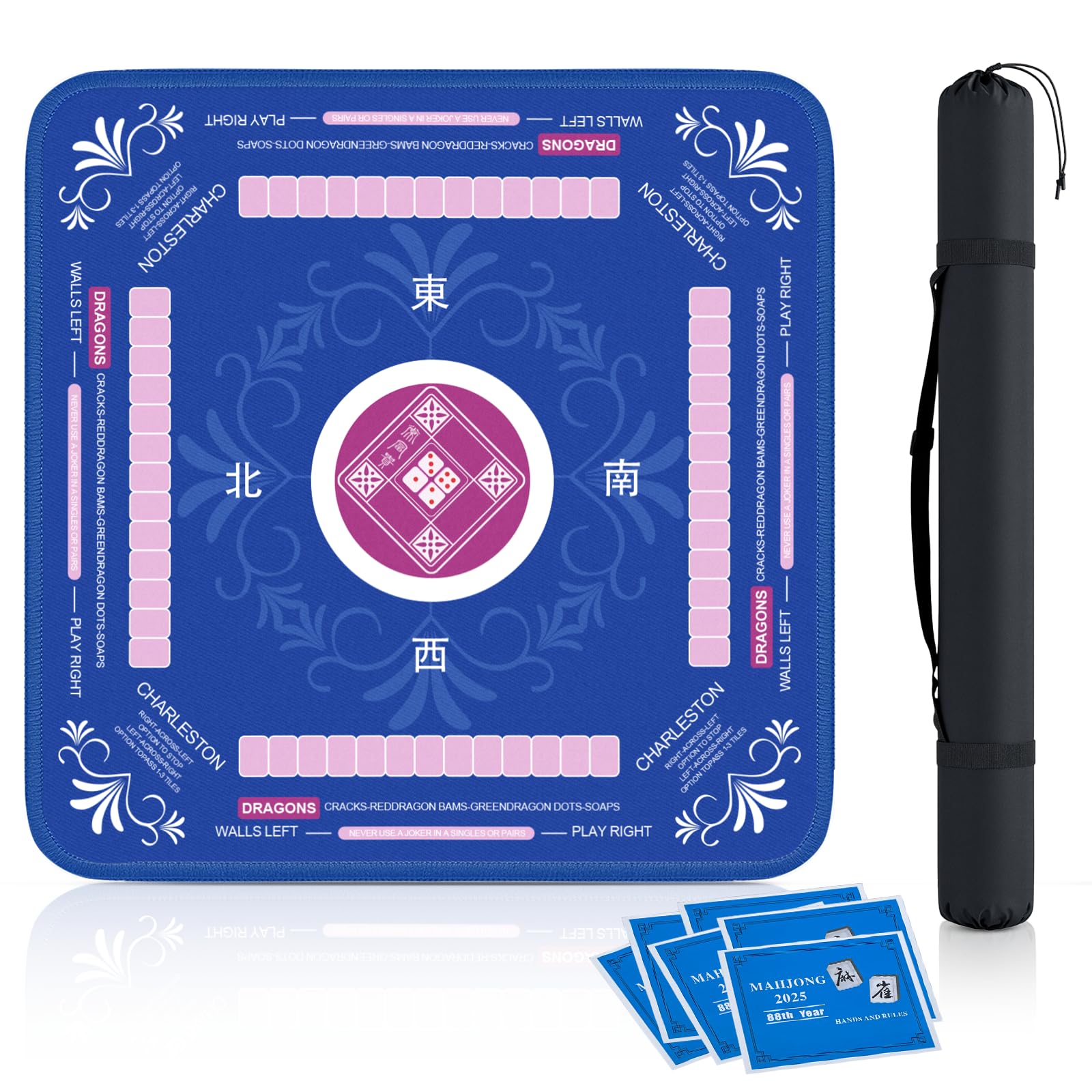 Alfombrilla Mahjong con reglas para mesa, antideslizante y silenciosa, viene con 6 tarjetas de referencia y 1 bolsa de almacenamie