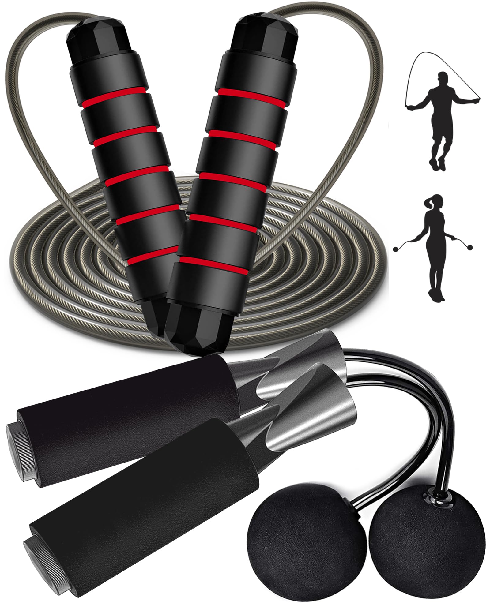 Cuerda de saltar con peso para hombres, mujeres (1.5 libras) – Asas de acero aleado, cuerda de salto de velocidad, gimnasio, inter