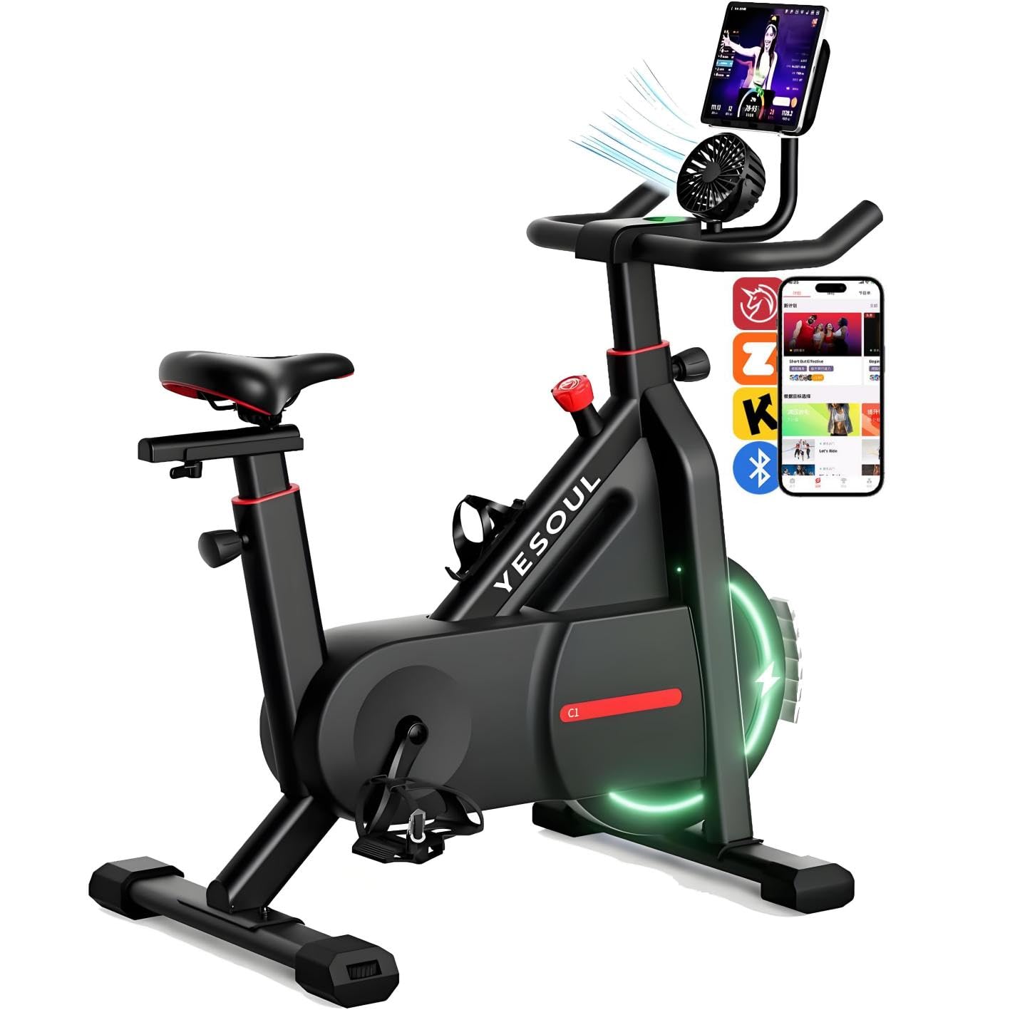Yesoul Self-Powered Smart Exercise Bike with Cooling Fan & App, Magnetic Resistance Stationary Bike for Home – 300lbs Weight Capac