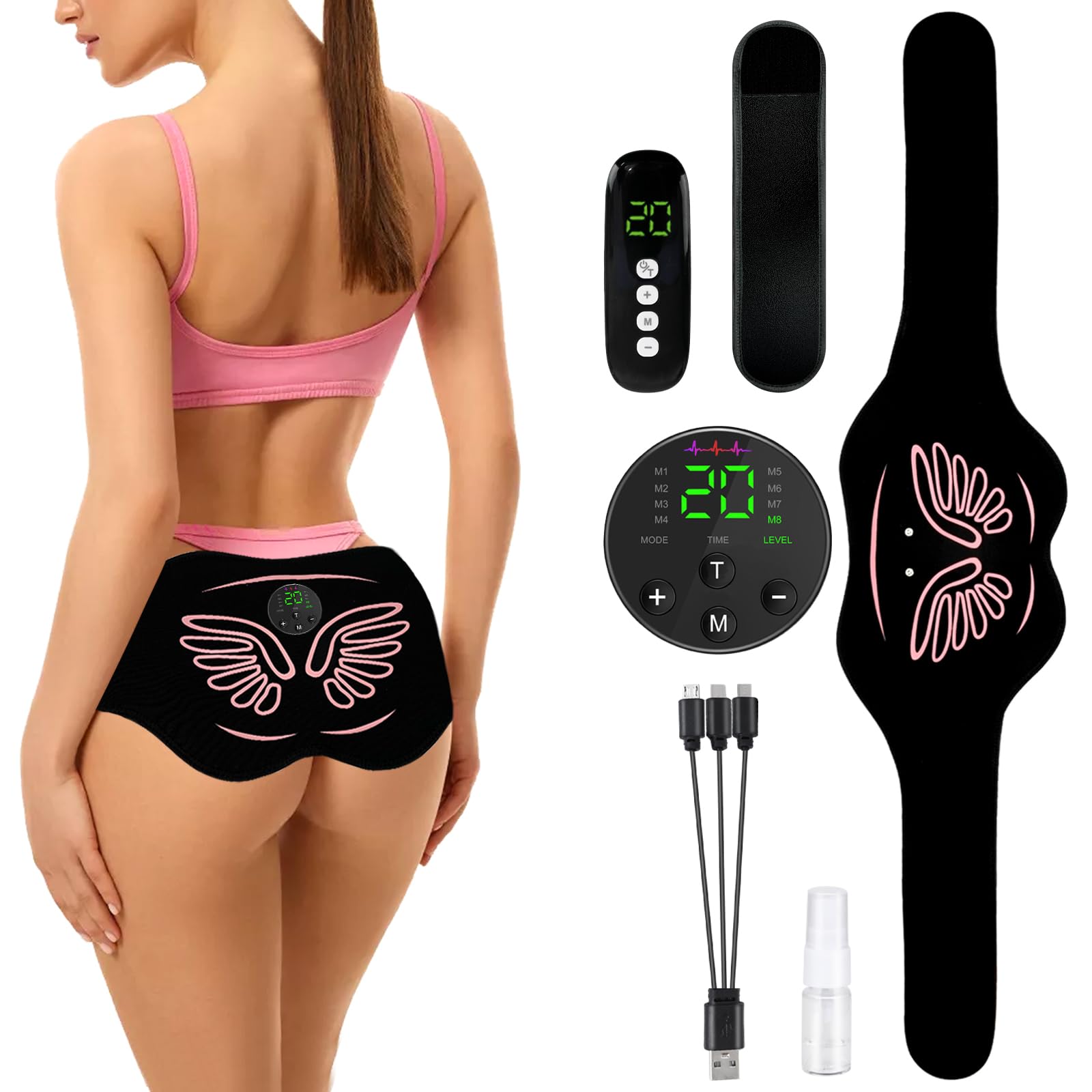 Entrenador de cadera, máquina de levantamiento de glúteos, estimulador muscular de glúteos, 8 modos y estimulador de tóner muscula