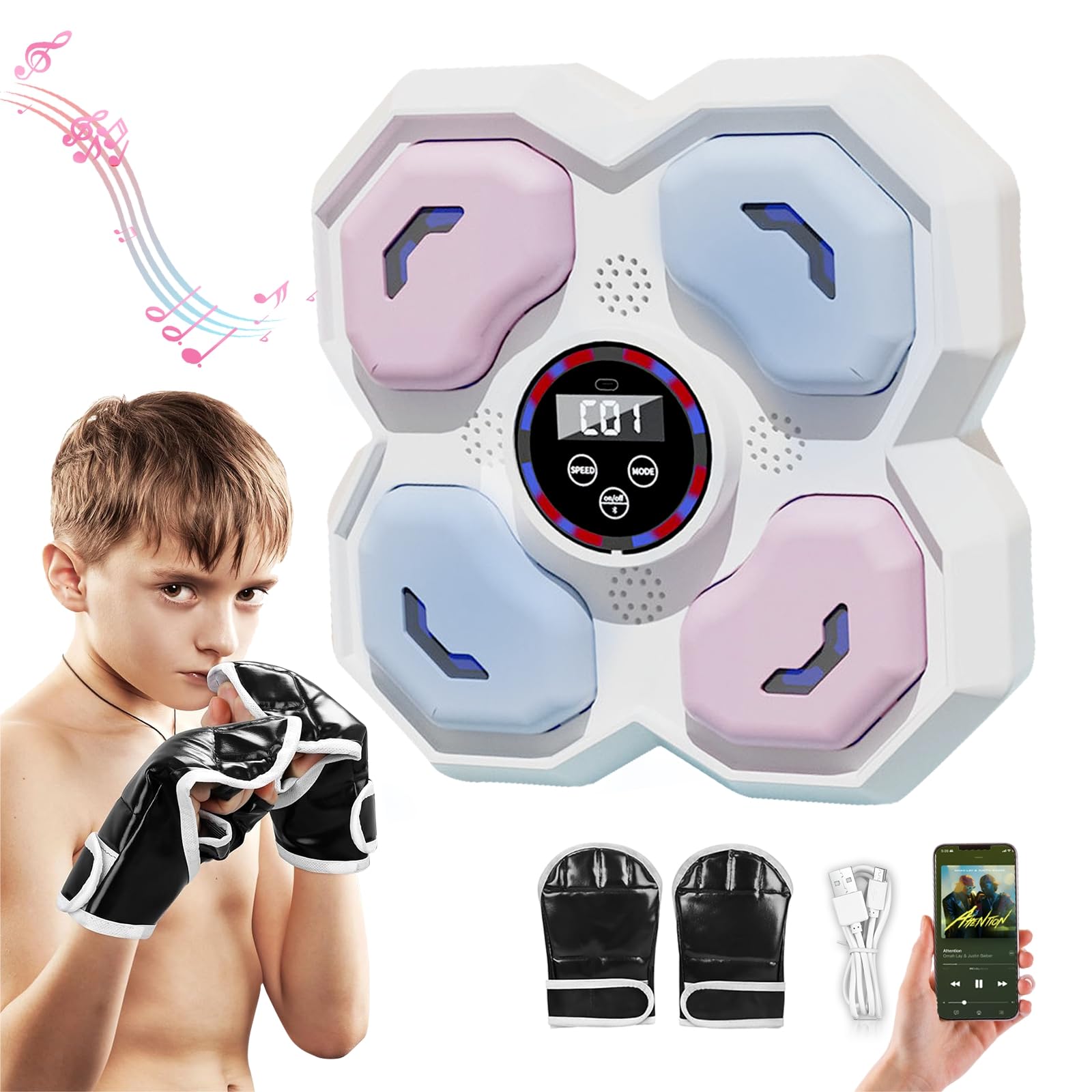 Máquina de boxeo musical con guantes para adultos y niños, 9 velocidades y 9 modos, máquina inteligente de entrenamiento de boxeo