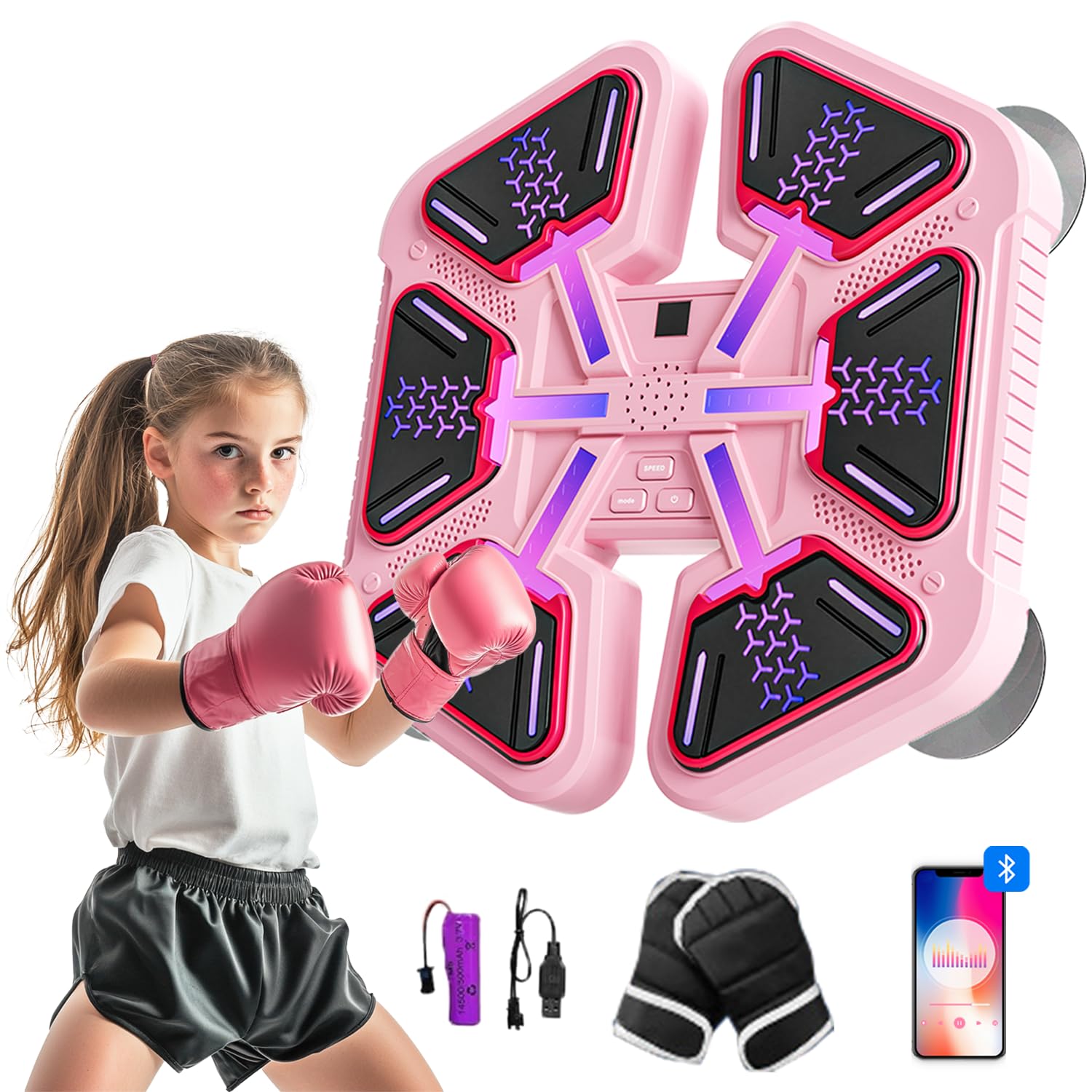 Máquina de boxeo musical mejorada para adultos y niños, entrenador de boxeo inteligente Bluetooth con guantes, máquina de perforac