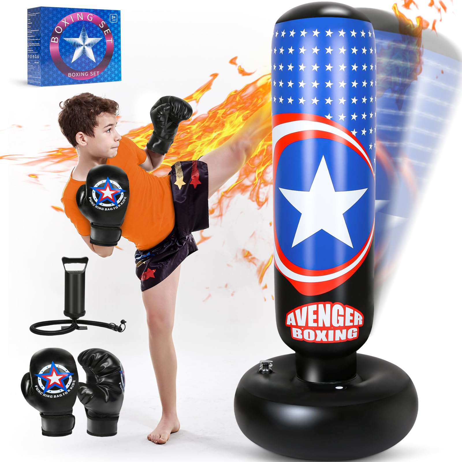 67” Inflatable Punching Bag Freestanding for Kids Aged 3-12 – Heavy Duty Boxing Set for Karate & Taekwondo, Stable Boxing Bag Act