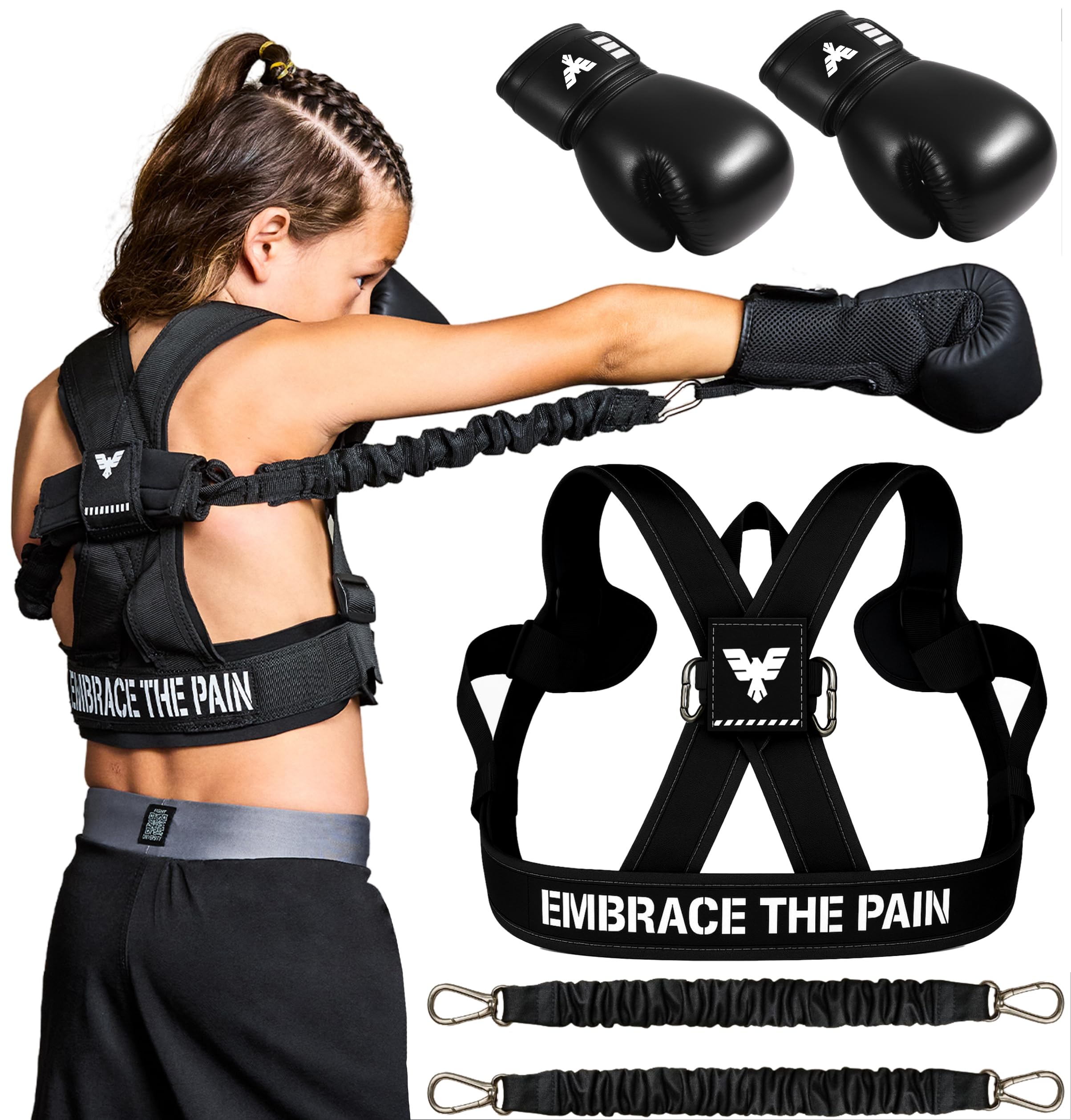 Elite Sports Arnés de boxeo para niños con guantes de 6 onzas, bandas de resistencia ajustables (3 niveles), correa de estabilidad