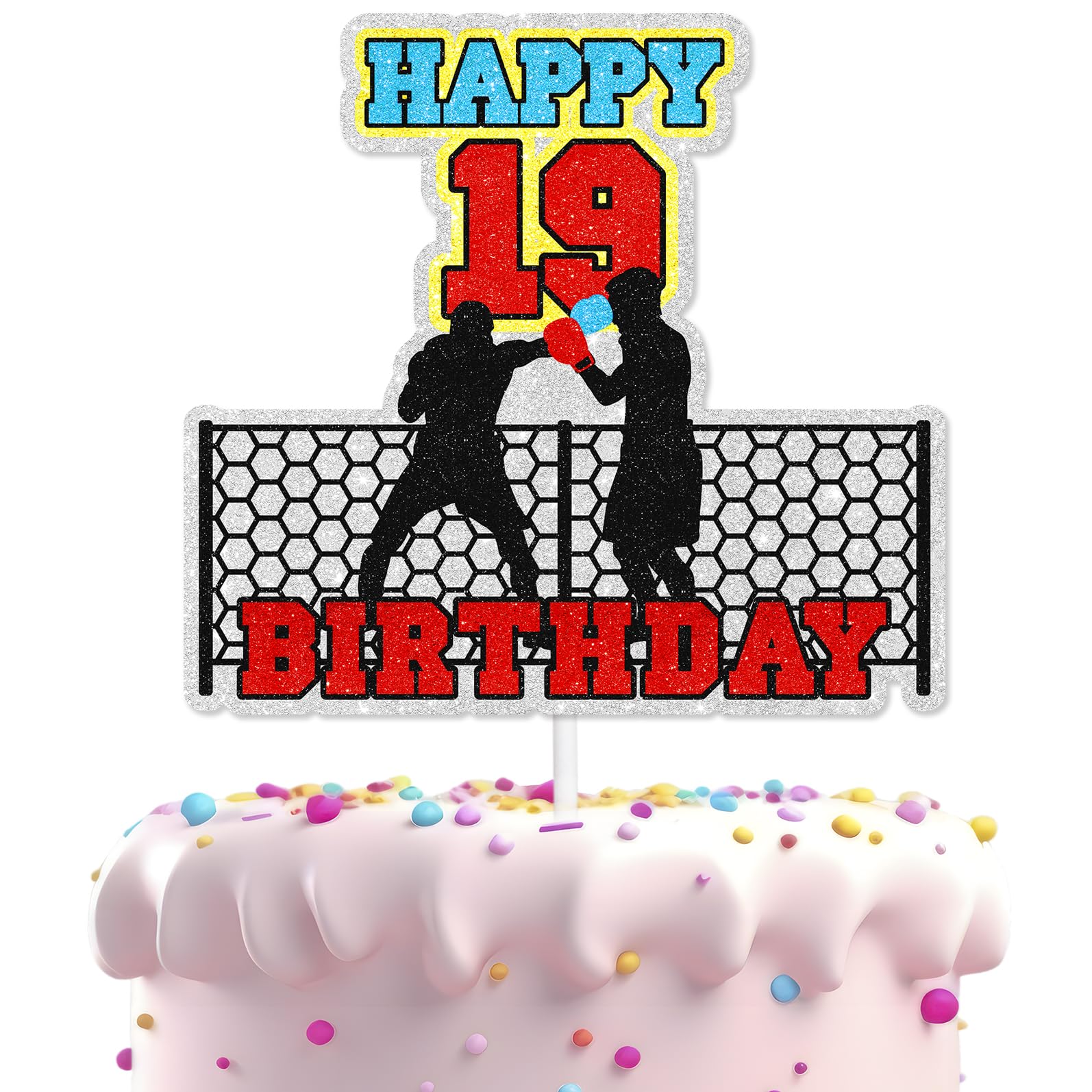 Decoración para pastel de 19 cumpleaños y 19 cumpleaños, fiesta de boxeo, fiesta deportiva, decoración de fiesta de cumpleaños de