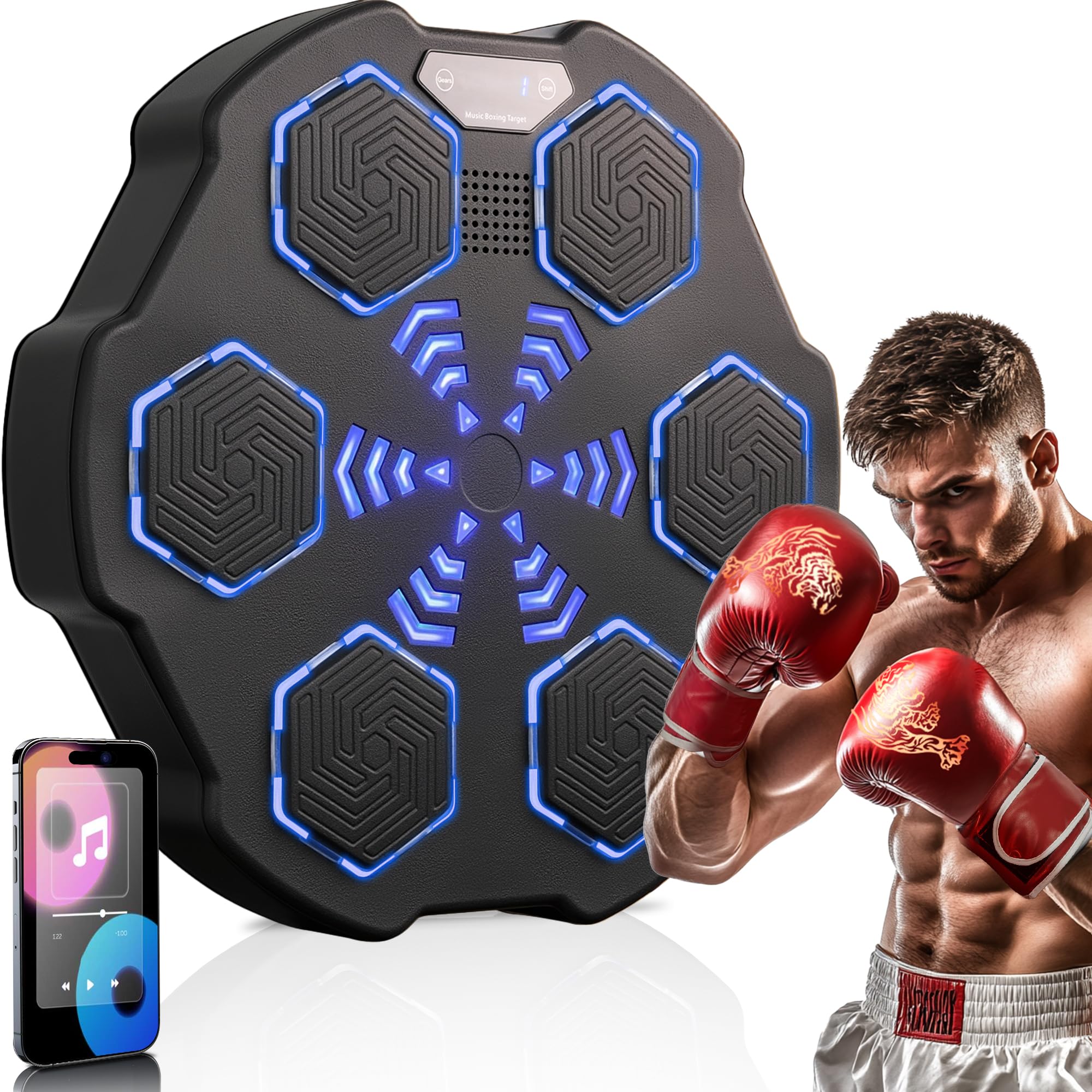 Máquina inteligente de boxeo musical Bluetooth con pantalla LED, montaje en pared, guantes de boxeo incluidos para adultos y niños