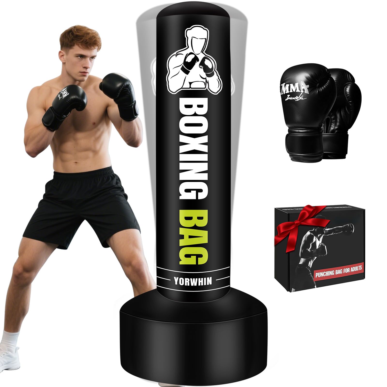 Saco de boxeo pesado independiente para adultos, saco de boxeo de pie de 70 pulgadas con guantes de boxeo, equipo de entrenamiento