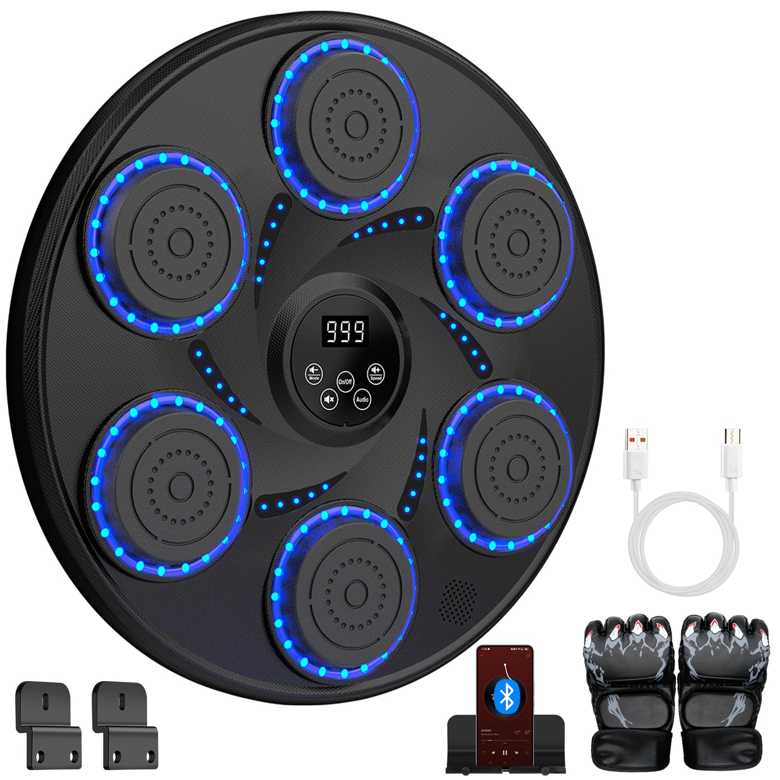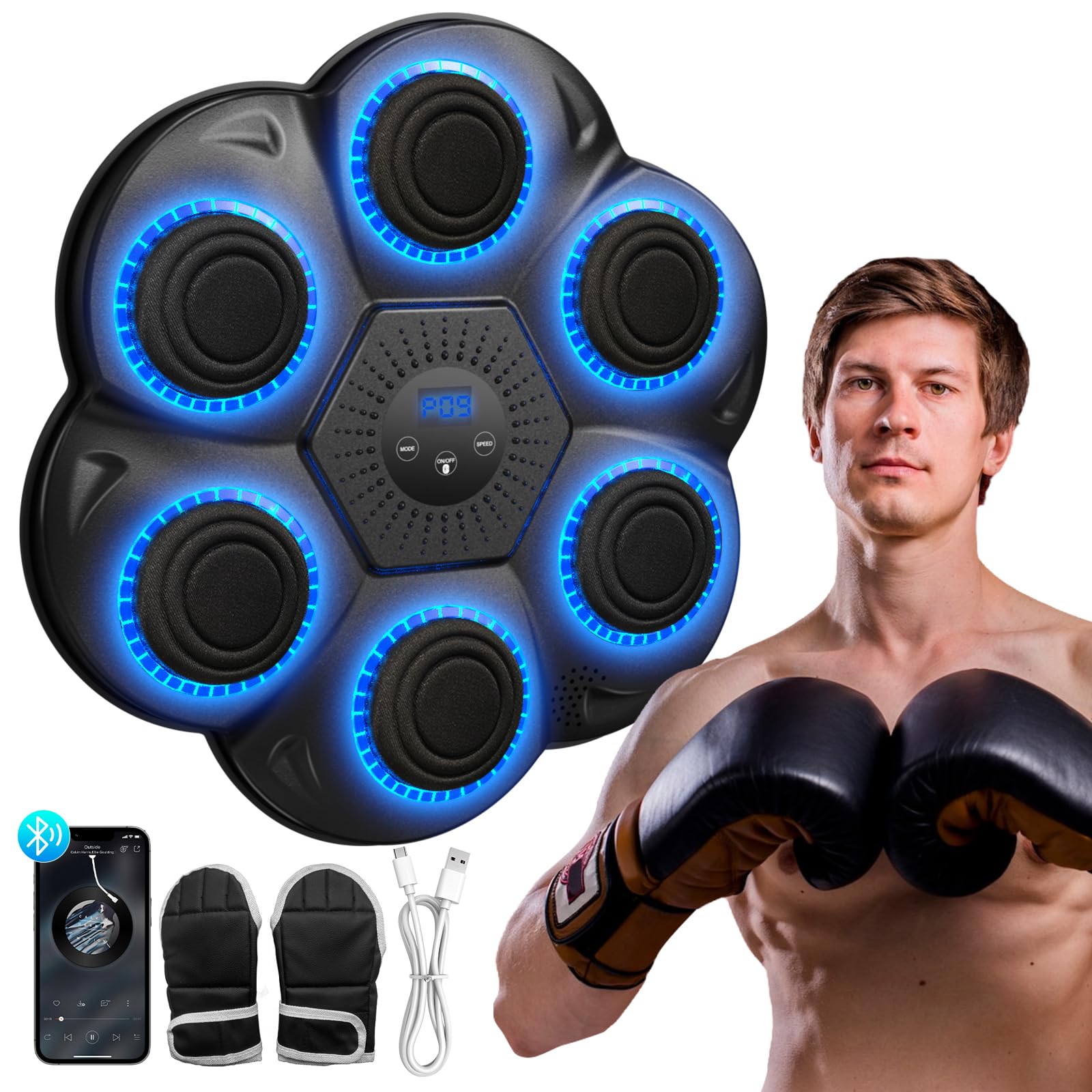 Máquina de boxeo musical para adultos y niños, máquina de boxeo inteligente con Bluetooth, música montada en la pared con guantes