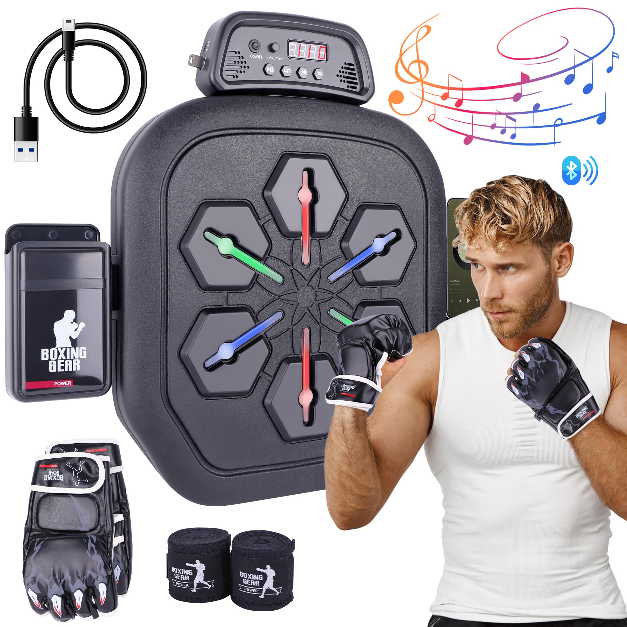 Máquina de boxeo musical con guantes, boxeador de música inteligente Bluetooth montado en la pared para adultos, entrenamiento en