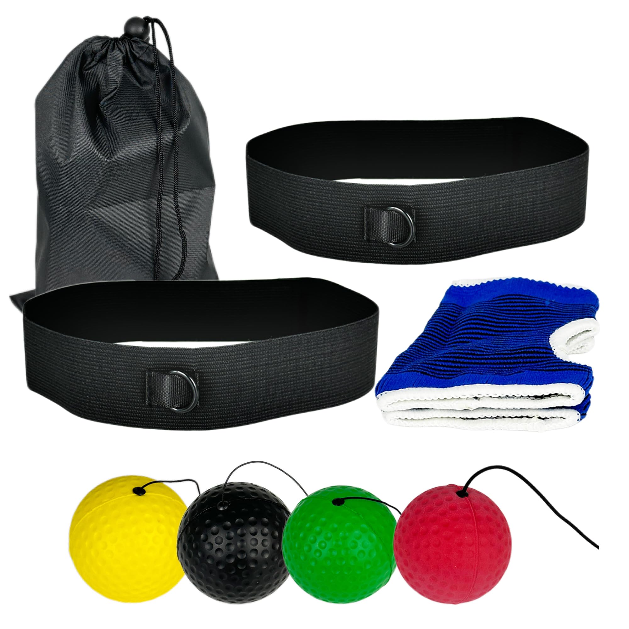 Juego de entrenamiento de boxeo Reflex, 4 bolas React, 2 diademas ajustables, 2 guantes, con bolsa de almacenamiento