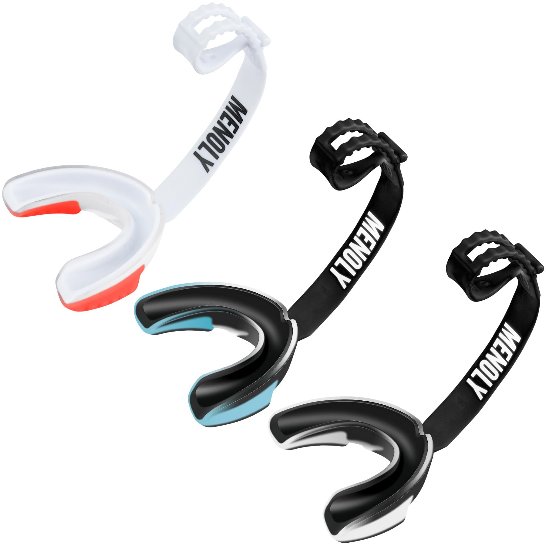 MENOLY Paquete de 3 protectores bucales juveniles con correa, protector bucal para adultos, con fundas para fútbol, lacrosse, hock