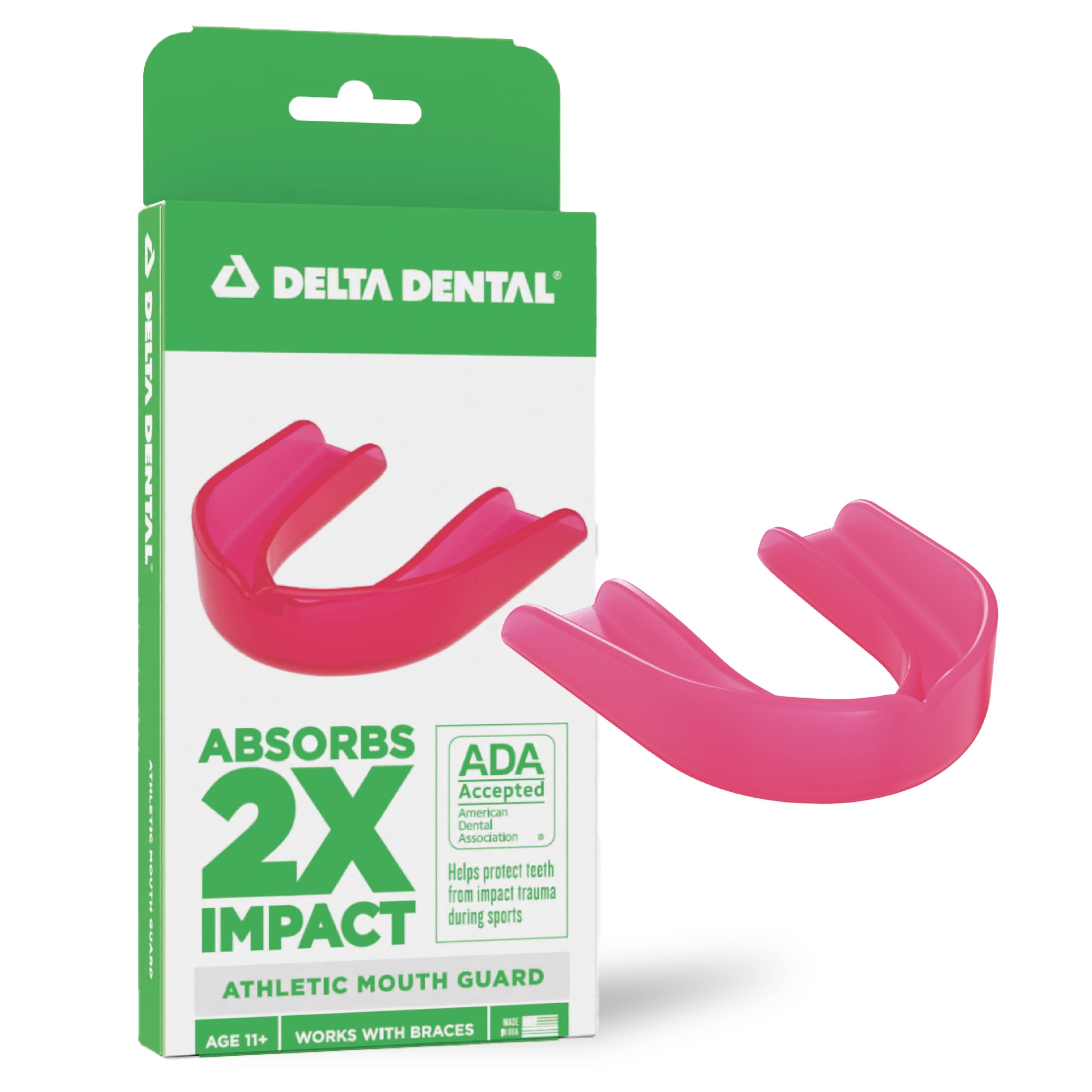 Delta Dental Protector bucal deportivo, aceptado por la ADA, 2 veces la absorción de impactos, funciona con frenillos, color rosa