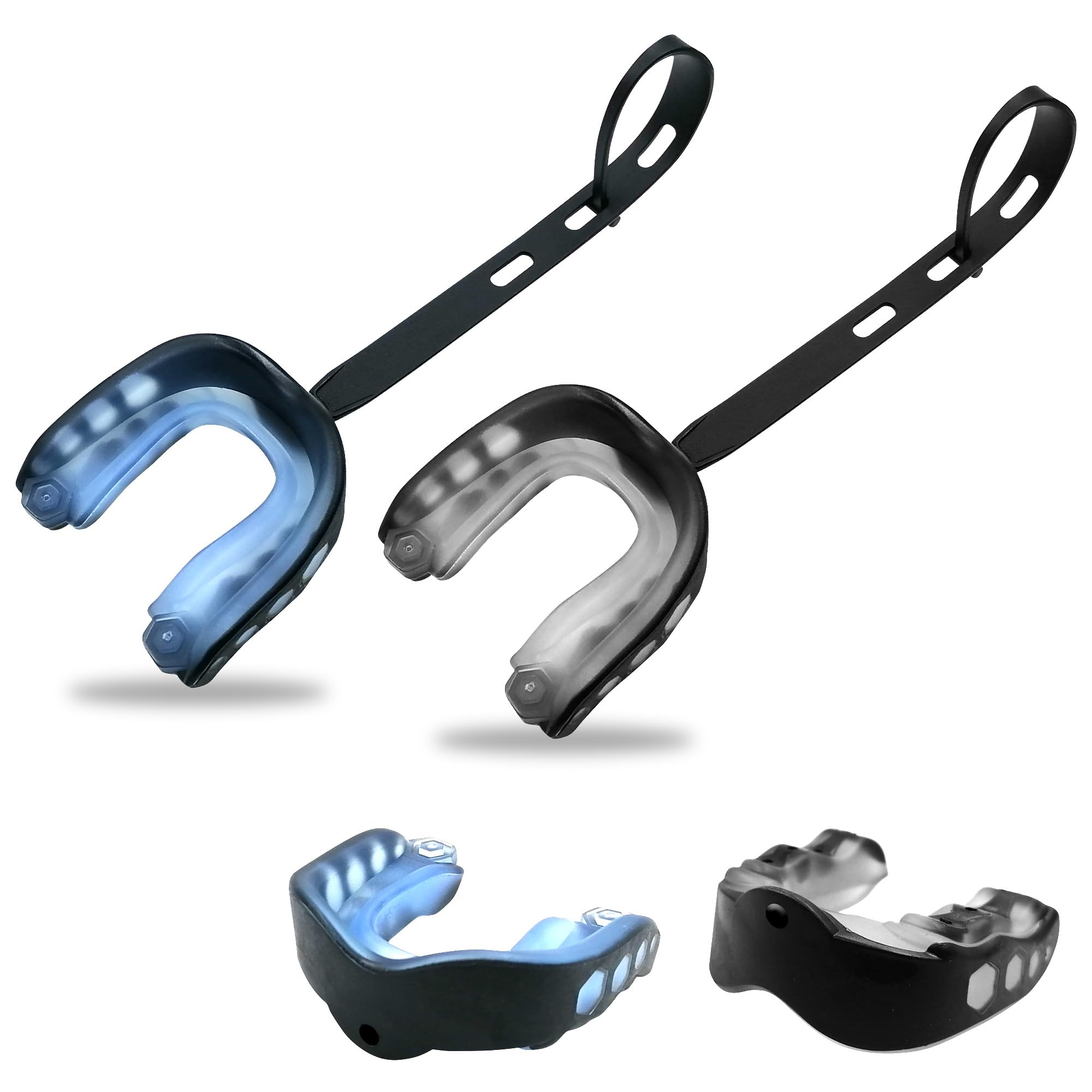 Paquete de 2 protectores bucales de fútbol para jóvenes y adultos con estuche y correa, protección bucal deportiva para boxeo, bal