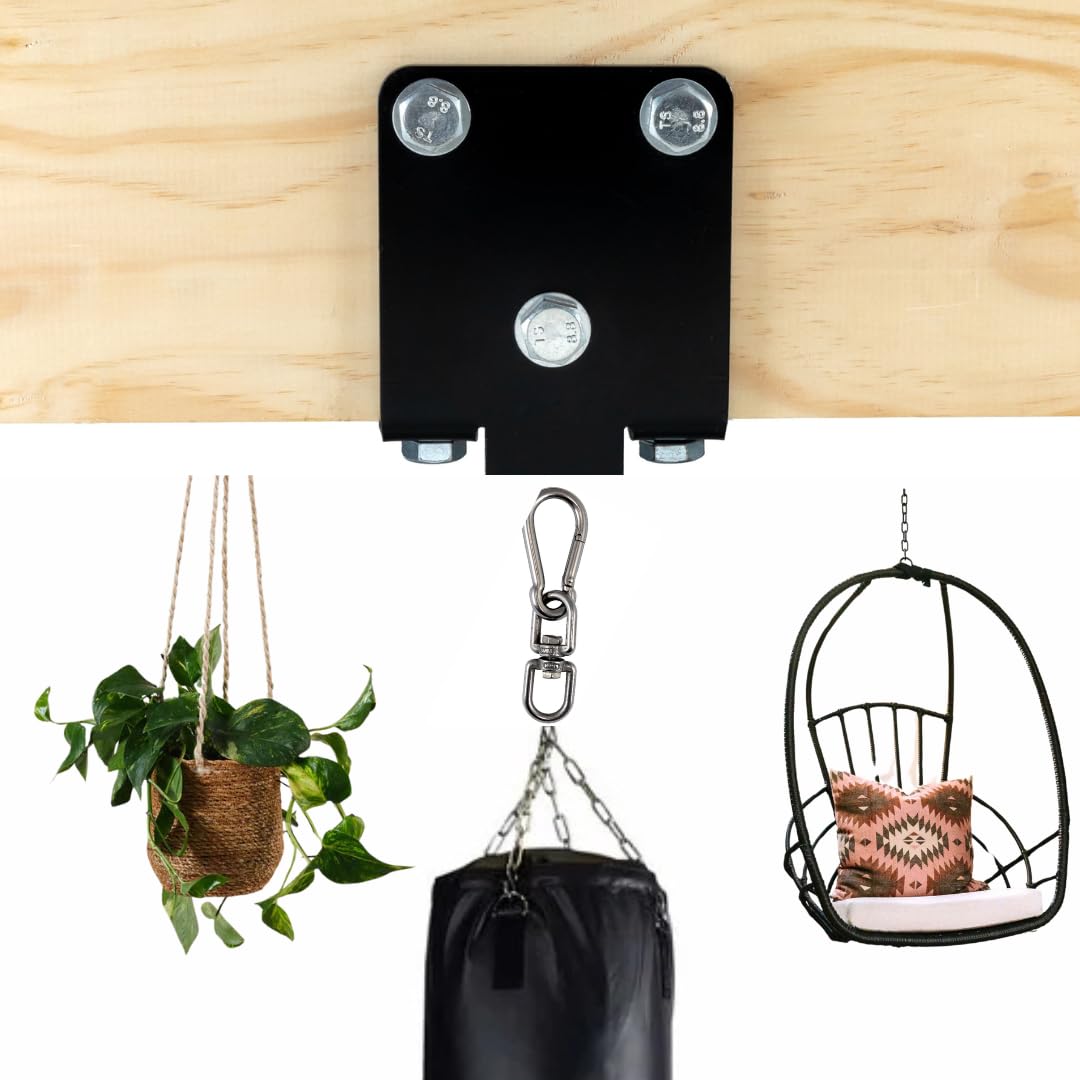 Soporte colgante para bolsa de boxeo de acero negro con mosquetón y gancho giratorio de 5.5 x 4 pulgadas con 3 pernos de 3.9, 3 pe