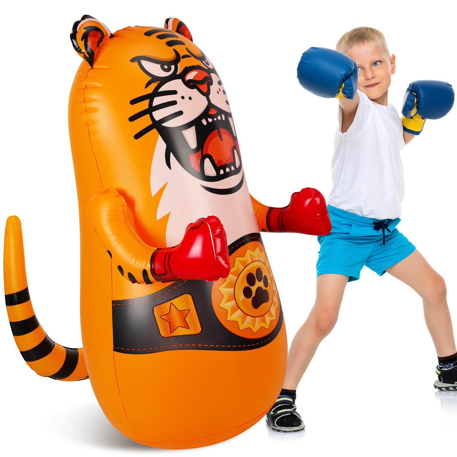 Saco de boxeo inflable de tigre para niños de 47 pulgadas, juguetes de tigre para niños pequeños, bolsa de boxeo con material más