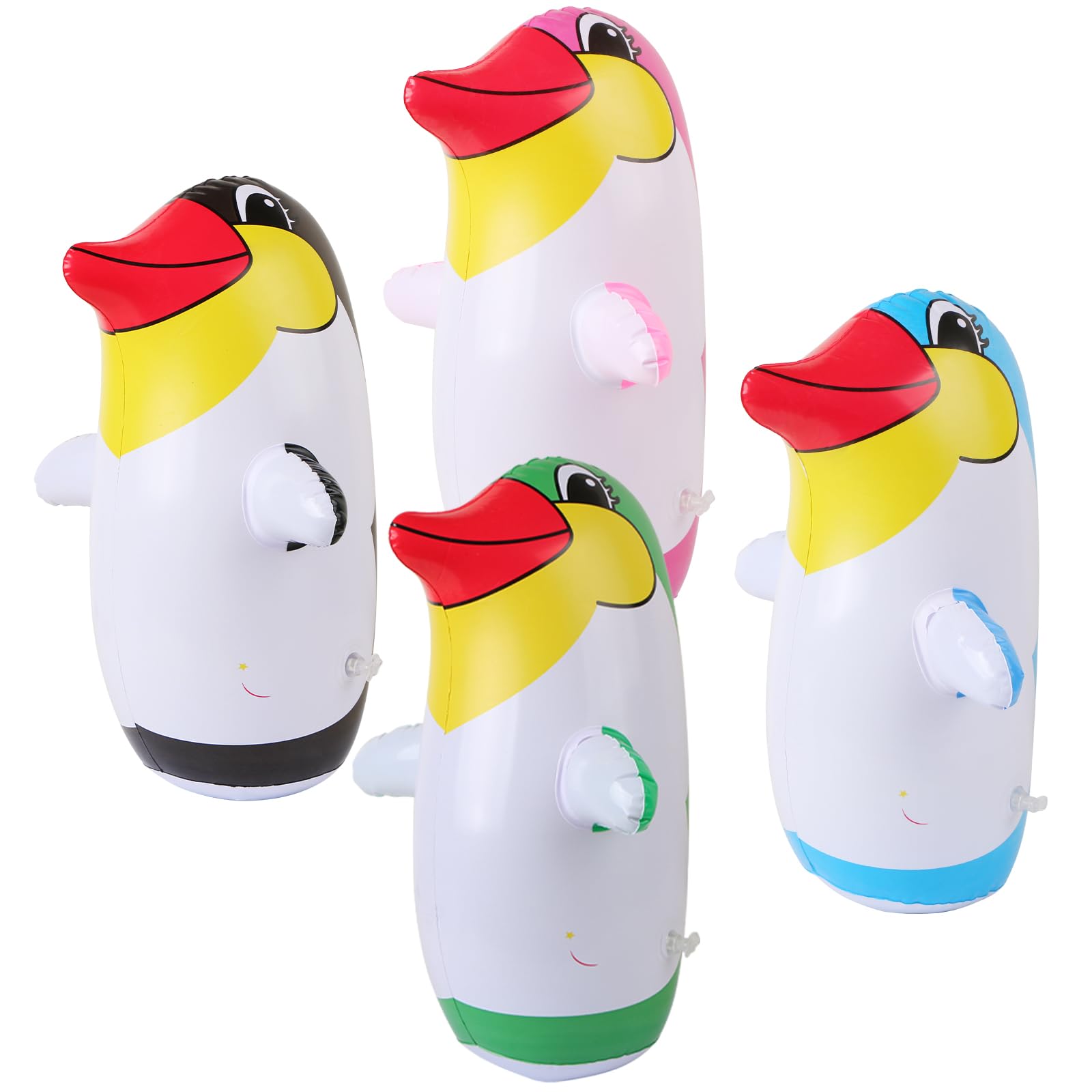 Paquete de 4 sacos de boxeo inflables de pingüinos de 13.8 pulgadas, color aleatorio ya relleno con bolsa inflable de arena, sumin